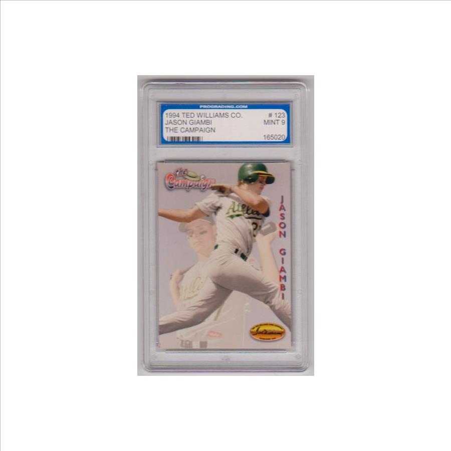 PropertyRoom.com's trusted merchant, Sports Collectibles, presents this online auction for the above Graded Mint 9 Rookie - Jason Giambi 1994 Ted Williams Co. Minor League #123 Card.