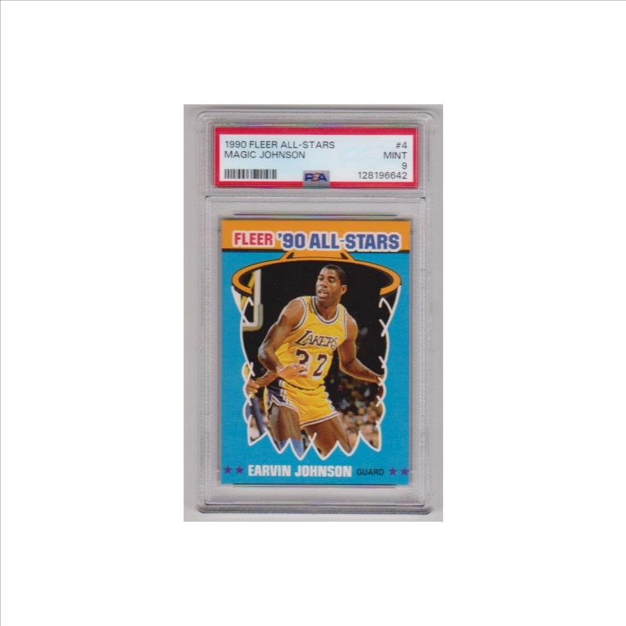 Graded PSA Mint 9 - Magic Johnson 1990 Fleer All-Stars #4 Card.