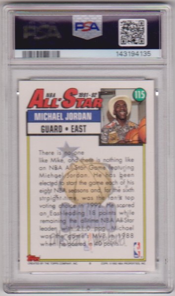 Graded PSA Mint 9 - Michael Jordan 1992-93 Topps All-Star #115 Card