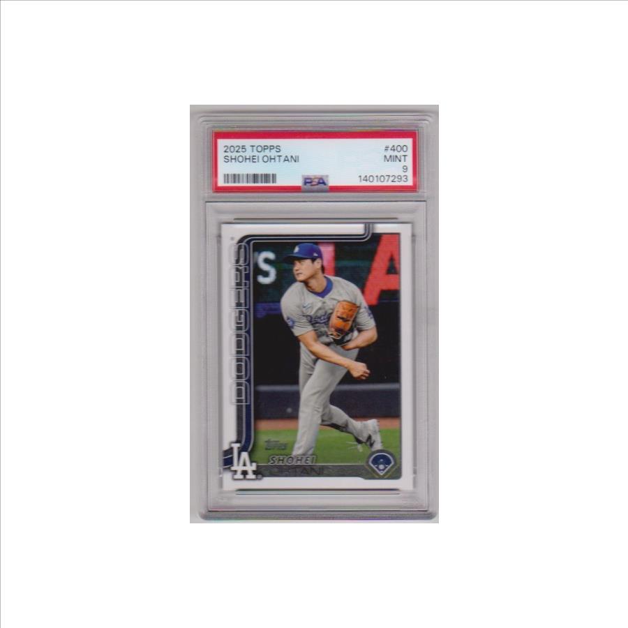 This is a Shohei Ohtani 2025 Topps #400 card that has been graded a Mint 9 by PSA. This is a sharp PSA graded card of this baseball star.