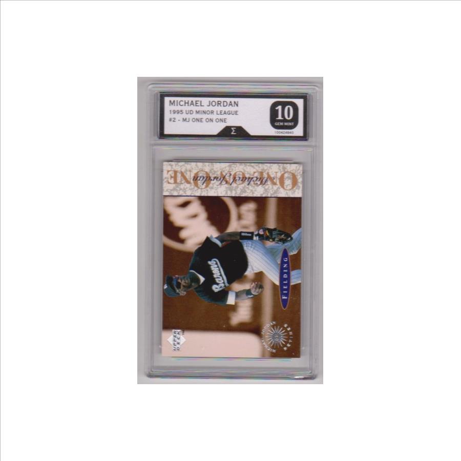 PropertyRoom.com's trusted merchant, Sports Collectibles, presents this online auction for the above Graded Sigma Gem Mint 10 - Michael Jordan 1995 Upper Deck Minor League One On One #2 Insert Card.