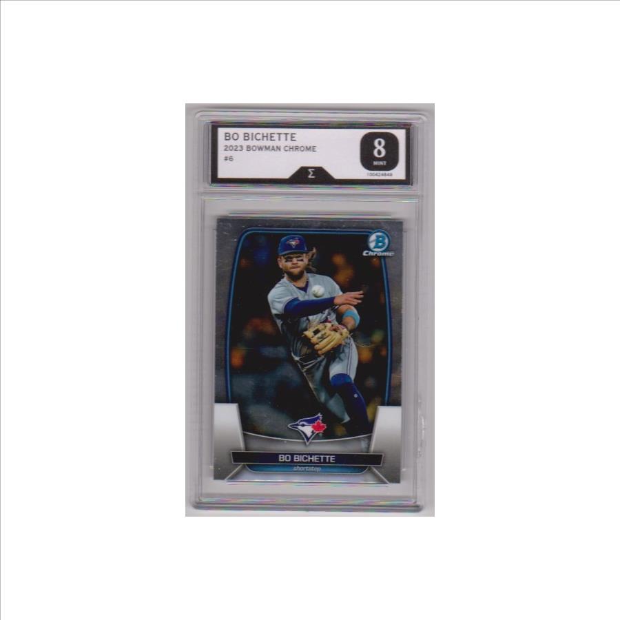PropertyRoom.com's trusted merchant, Sports Collectibles, presents this online auction for the above Graded Sigma Mint 8  - Bo Bichette 2023 Bowman Chrome #6 Card.