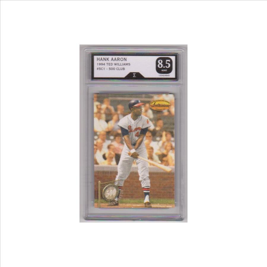 PropertyRoom.com's trusted merchant, Sports Collectibles, presents this online auction for the above Graded Sigma Mint 8.5 - Hank Aaron 1994 Ted Williams Company 500 Home Run Club #5C1 Insert Card.