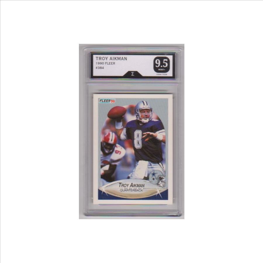 PropertyRoom.com's trusted merchant, Sports Collectibles, presents this online auction for the above Graded Sigma Mint+ 9.5 - Troy Aikman 1990 Fleer #384 Card.