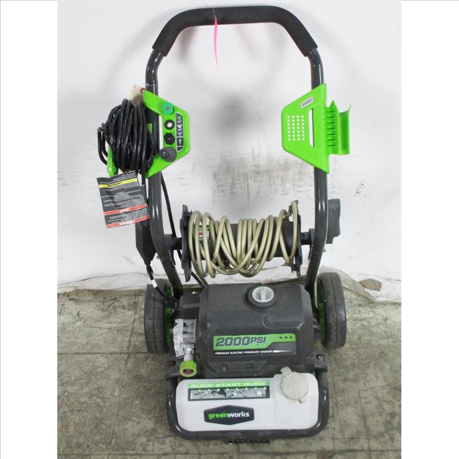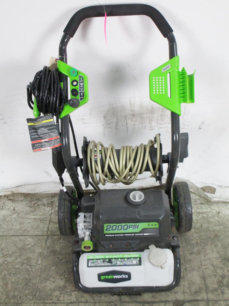 - Electric powered, compact, 2000PSI, reset & test button, power switch, soap dispenser, winding hose.