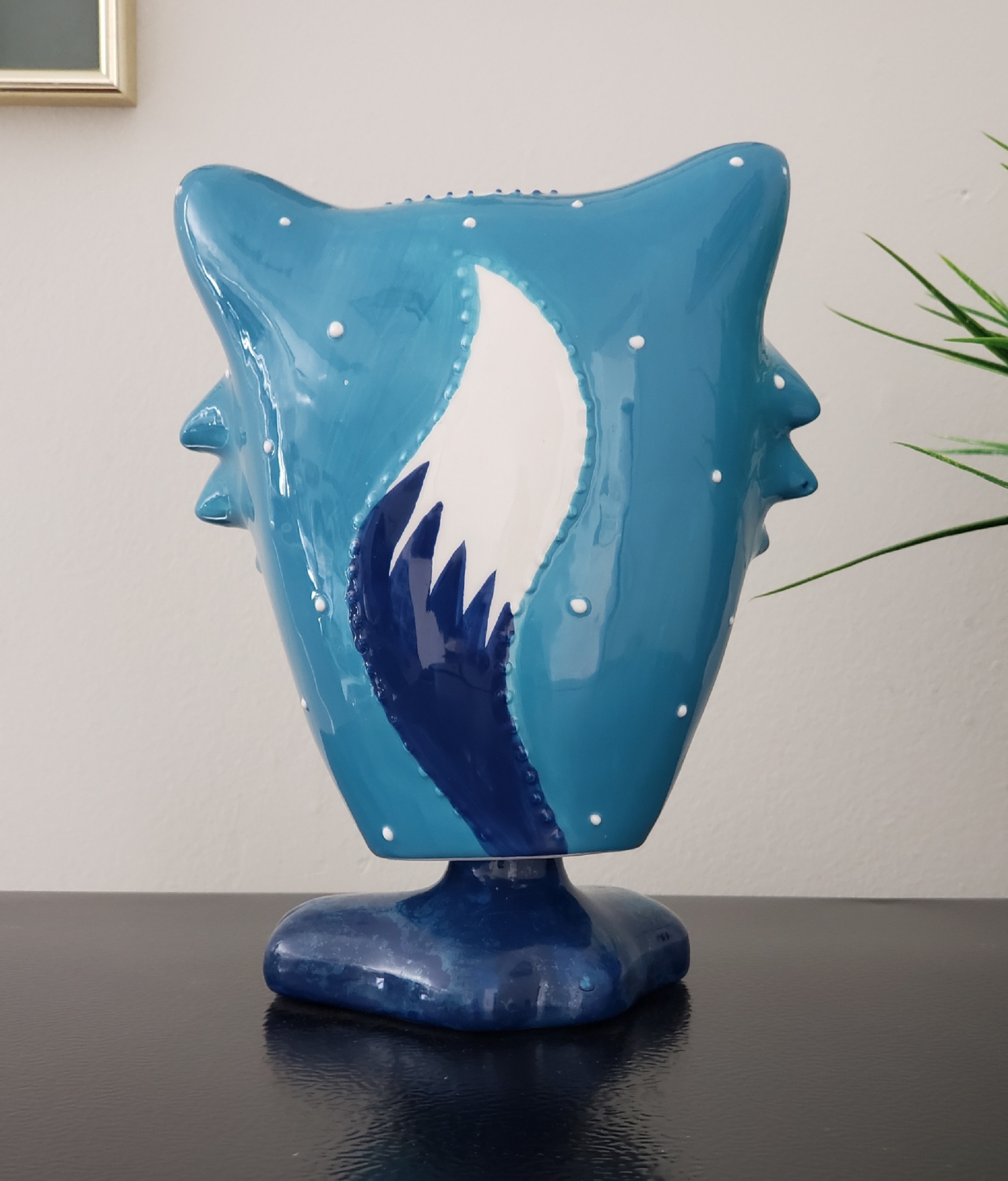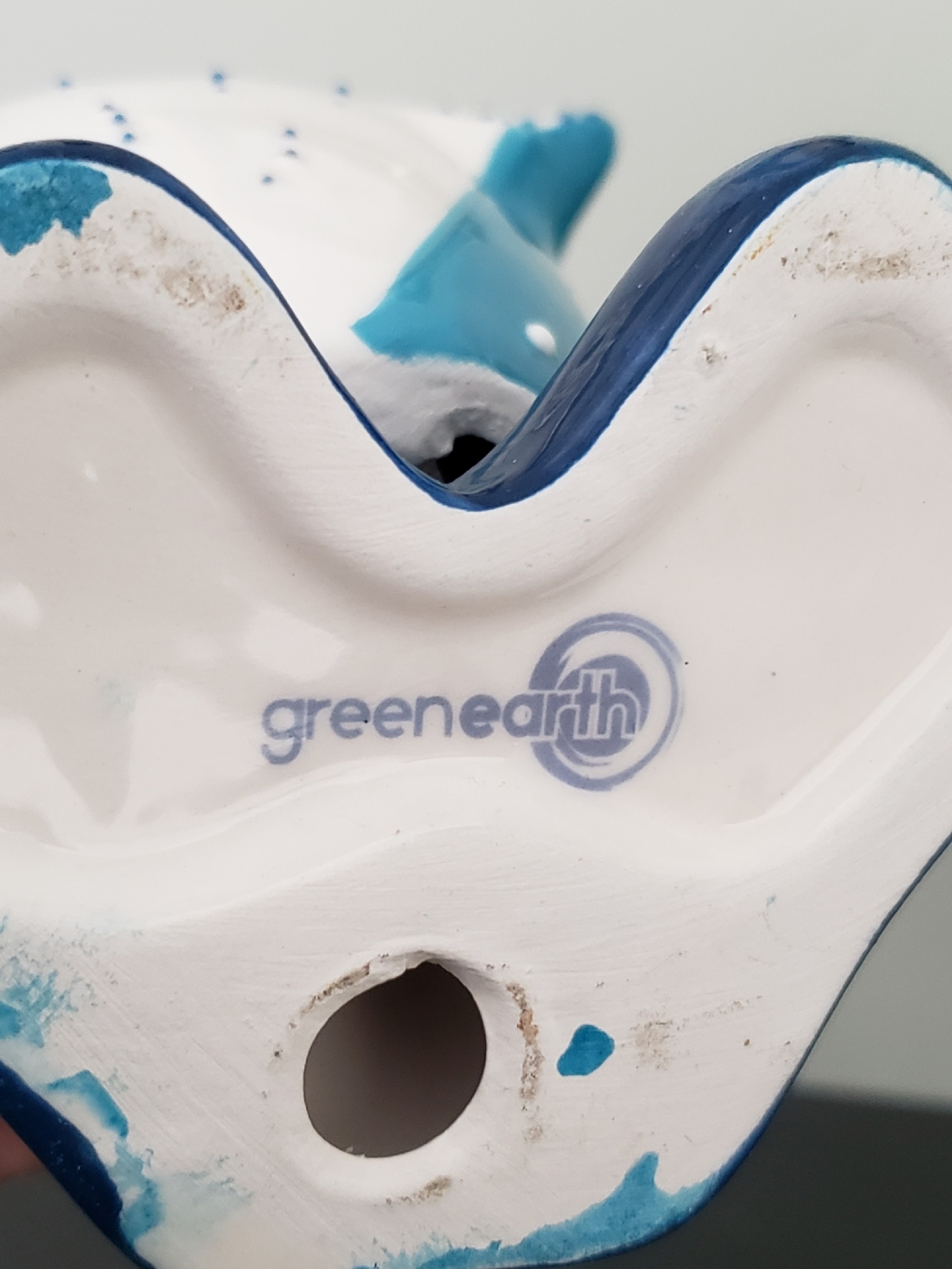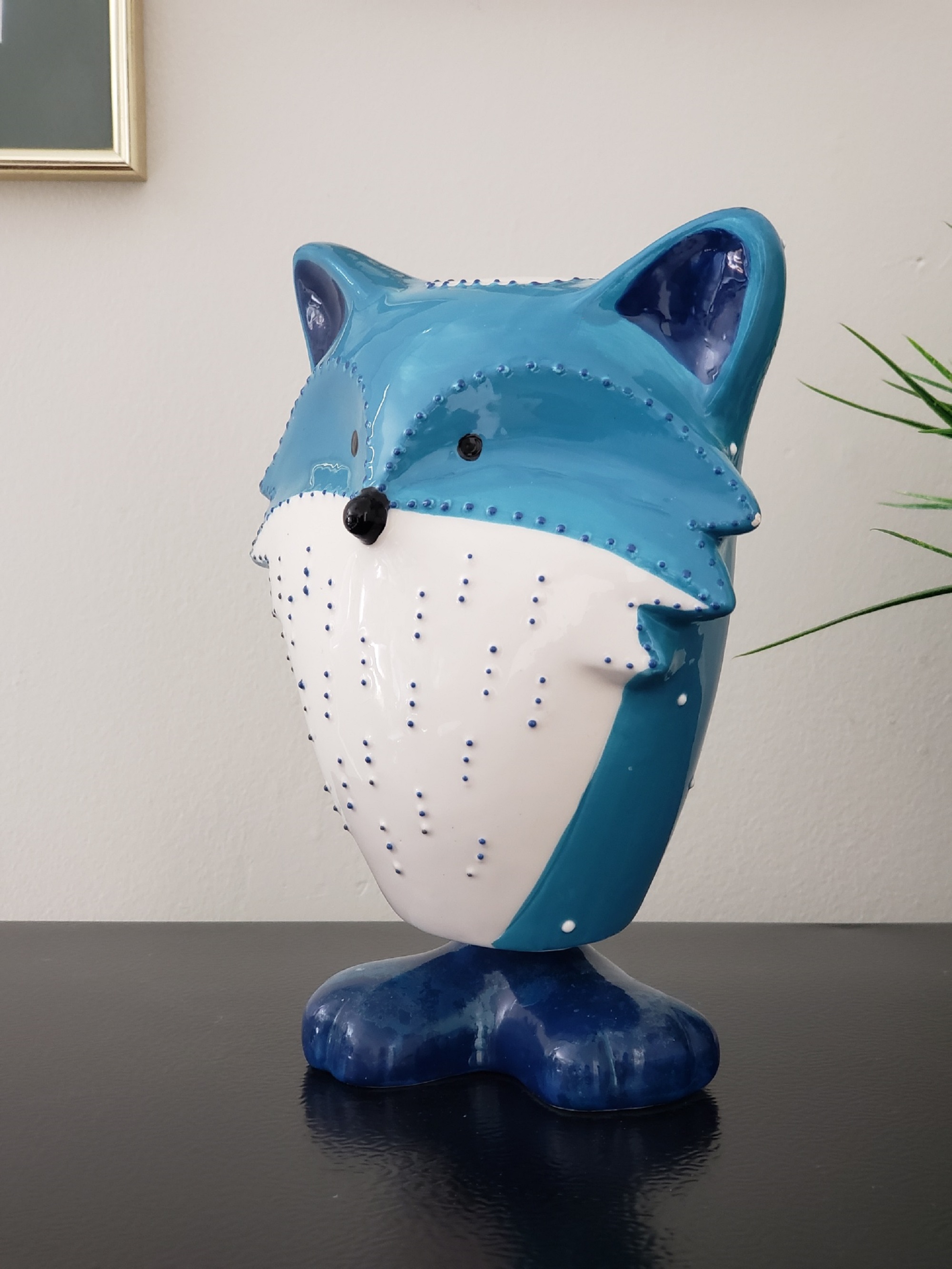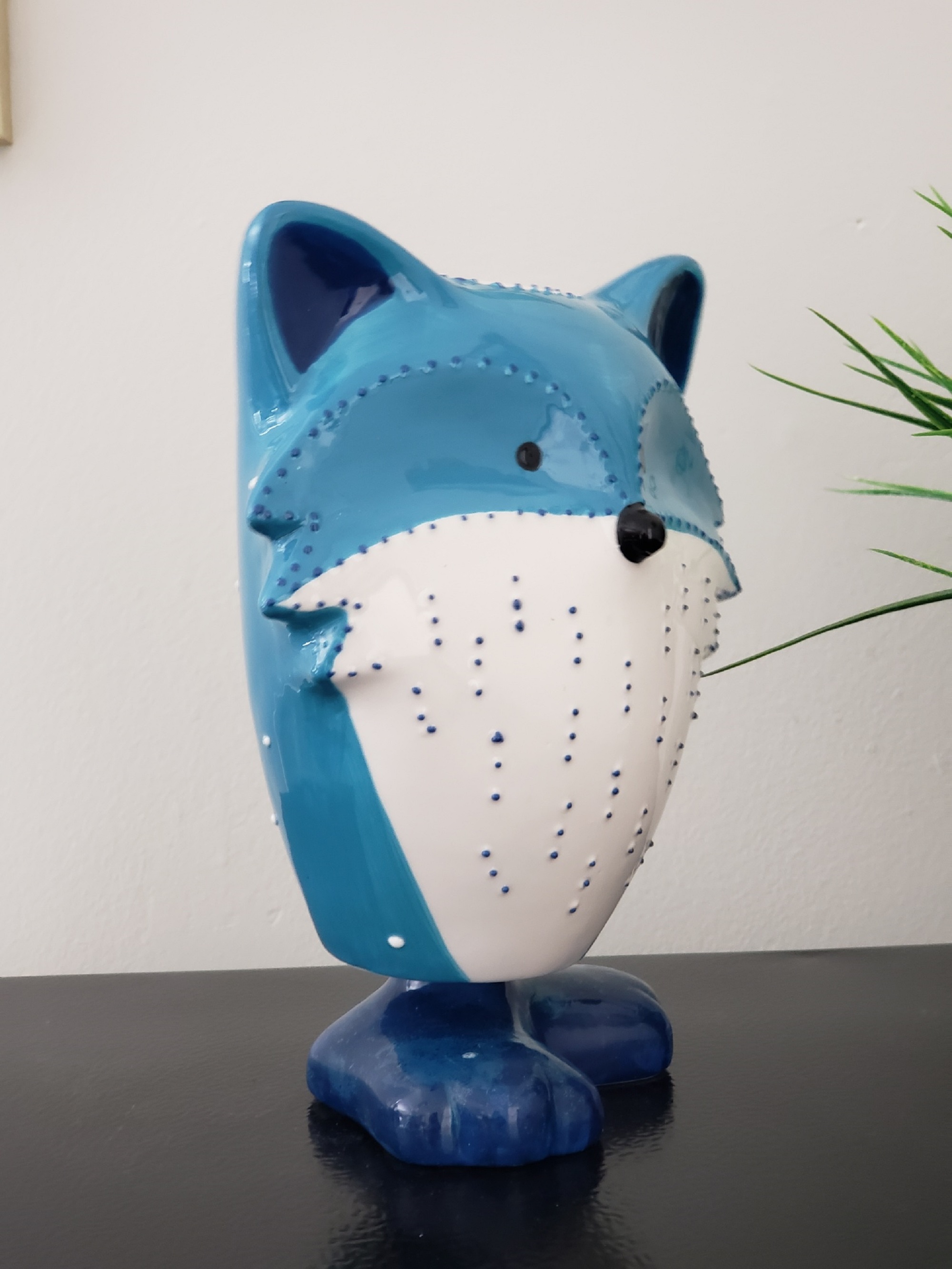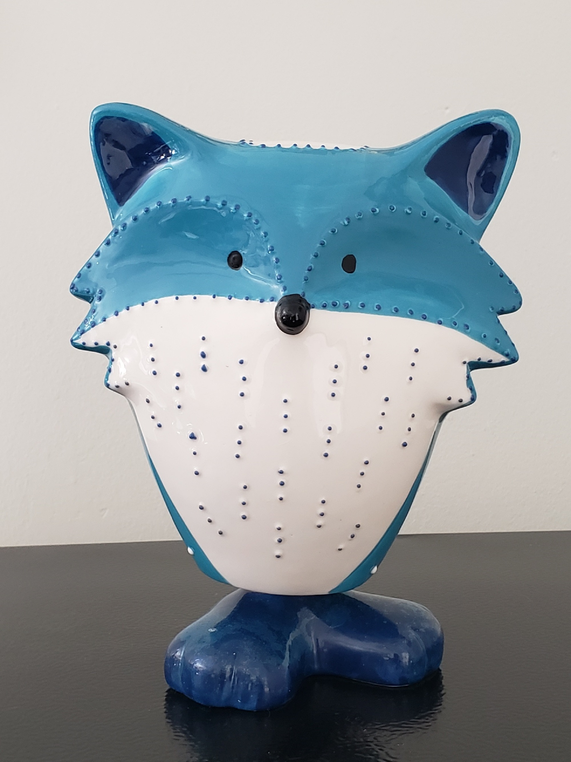Adorable hand painted GREENEARTH, ceramic, 3D blue and white Fox bobble figurine
