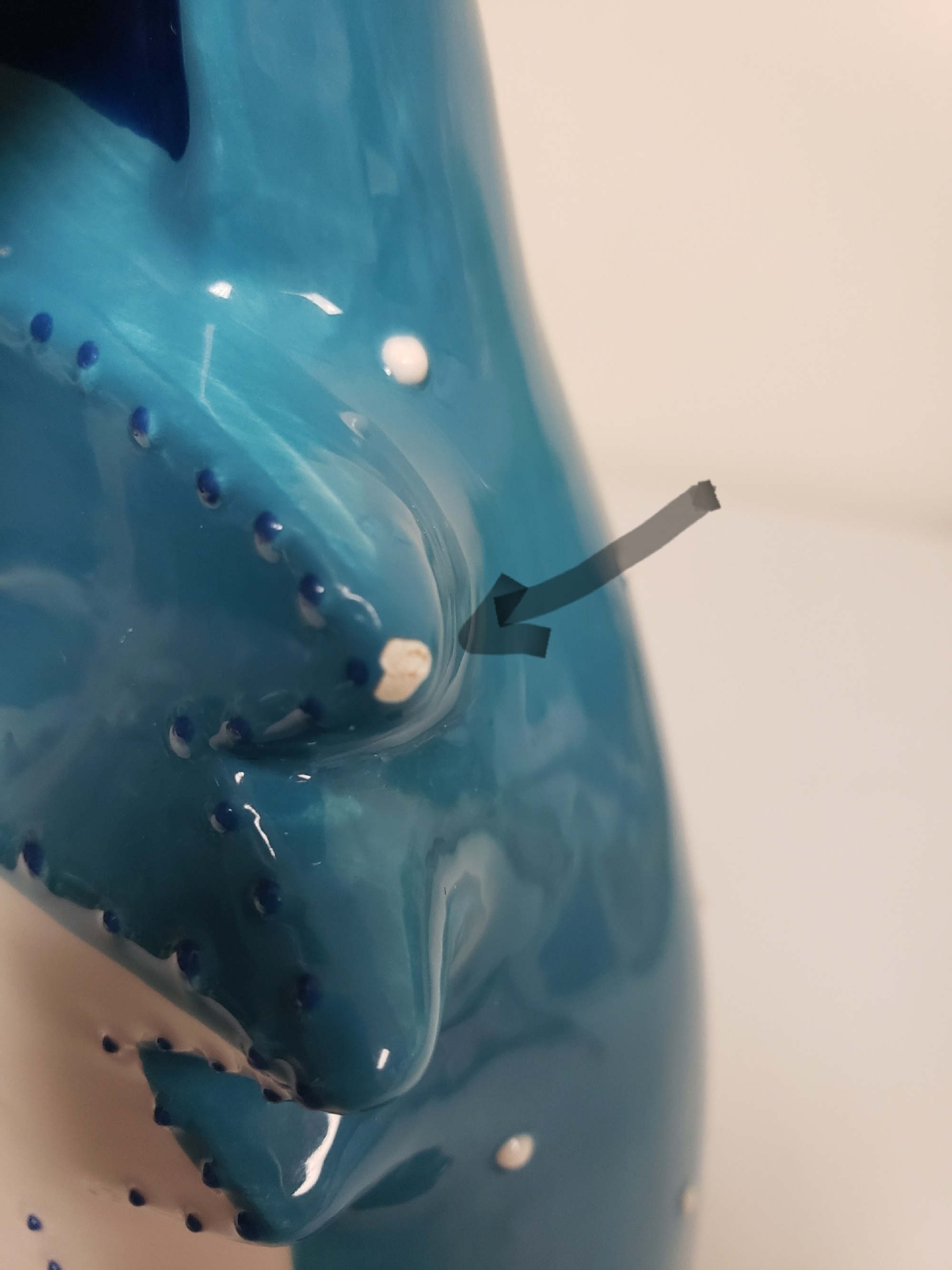 Used, Very Good Condition - one little paint chipped on the top right whisker, but it looks like it's part of the white dot accents
