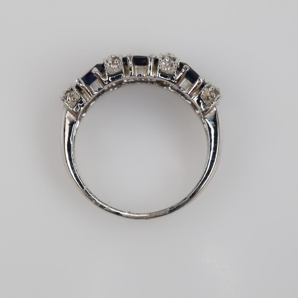 Grey Metal Blue & Clear Stone Fashion Ring