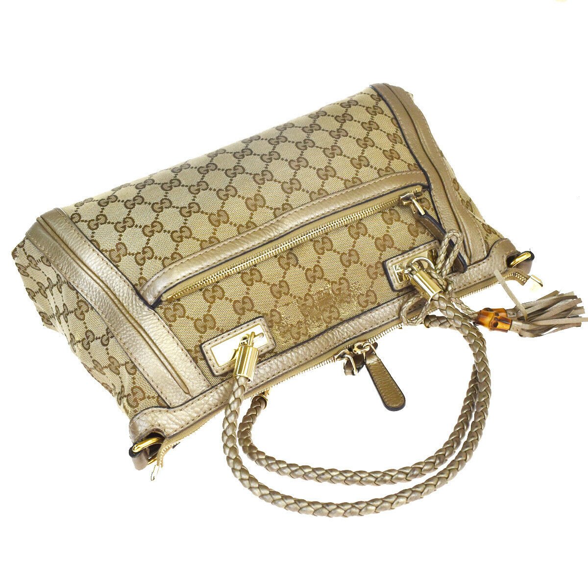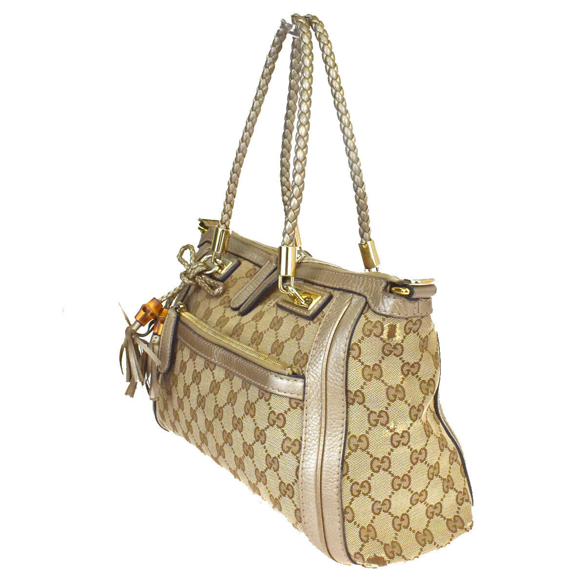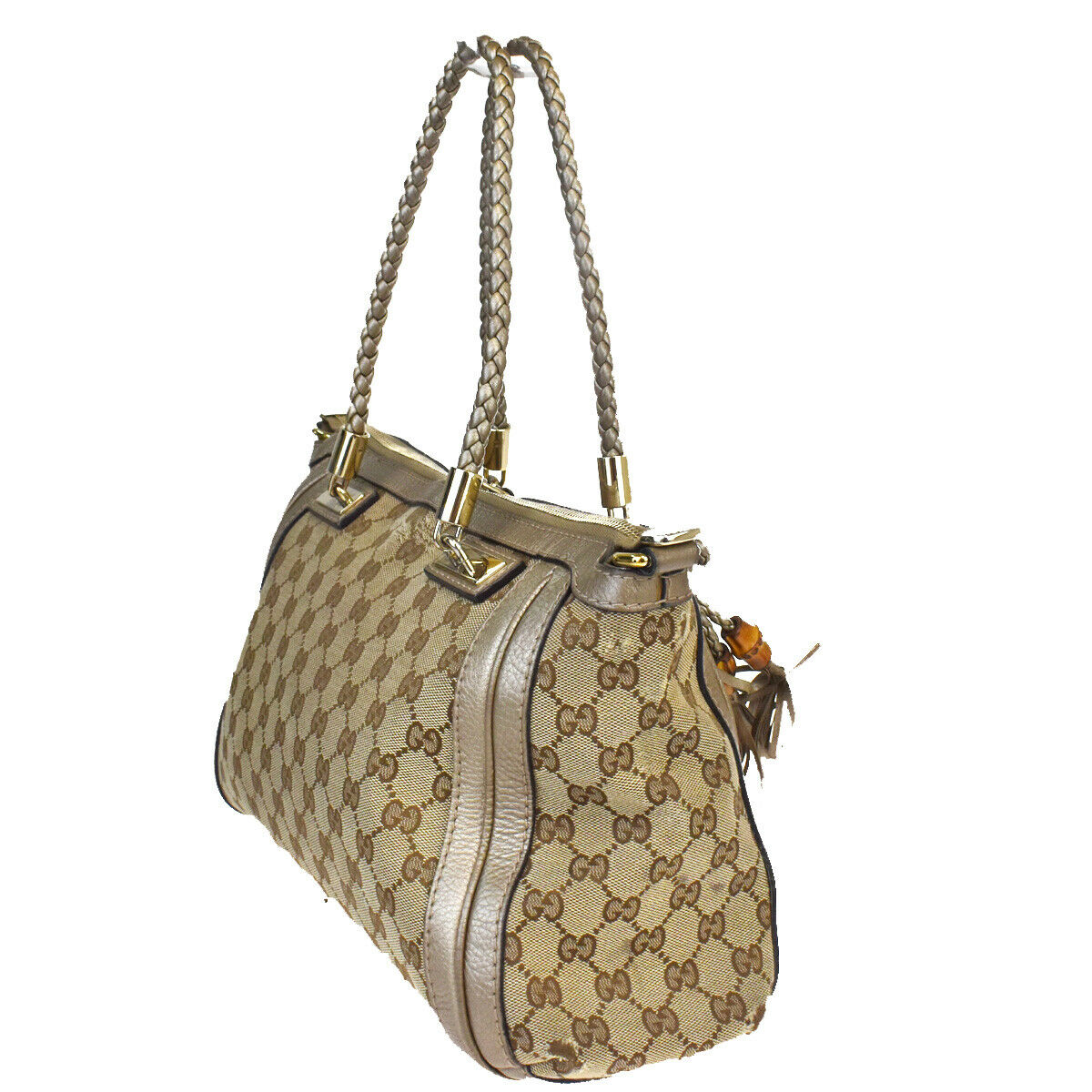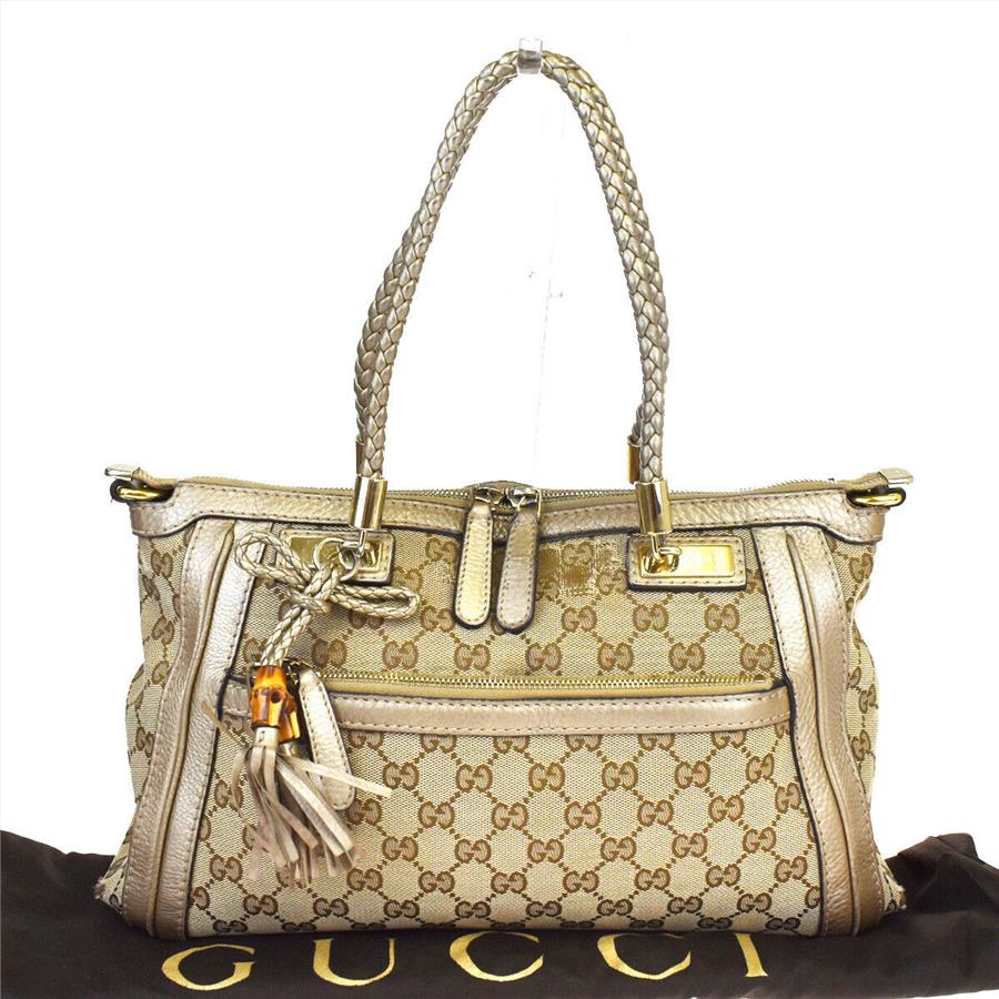GUCCI GG Pattern Bamboo Shoulder Bag Canvas Leather Brown Italy