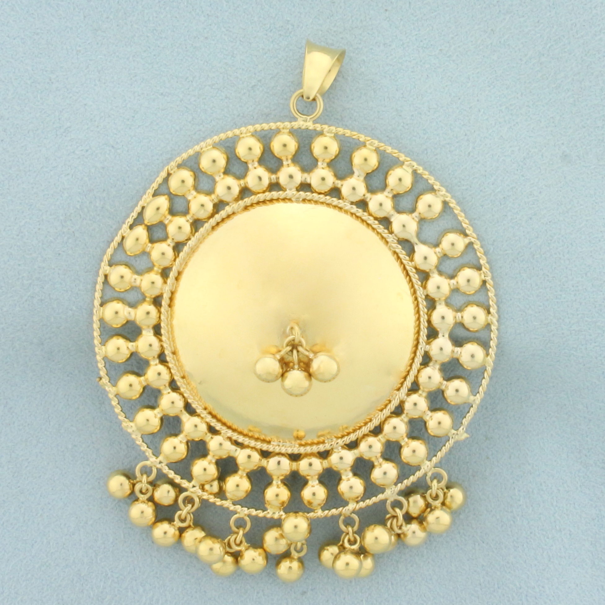 Hand Made Custom Designed Dangle Bead Statement Pendant in 22k Yellow Gold