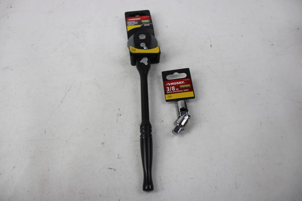 Husky Ratchet And Socket Set, Flex-Head Ratchet, 3/8" Universal Drive Joint, 3 Pieces