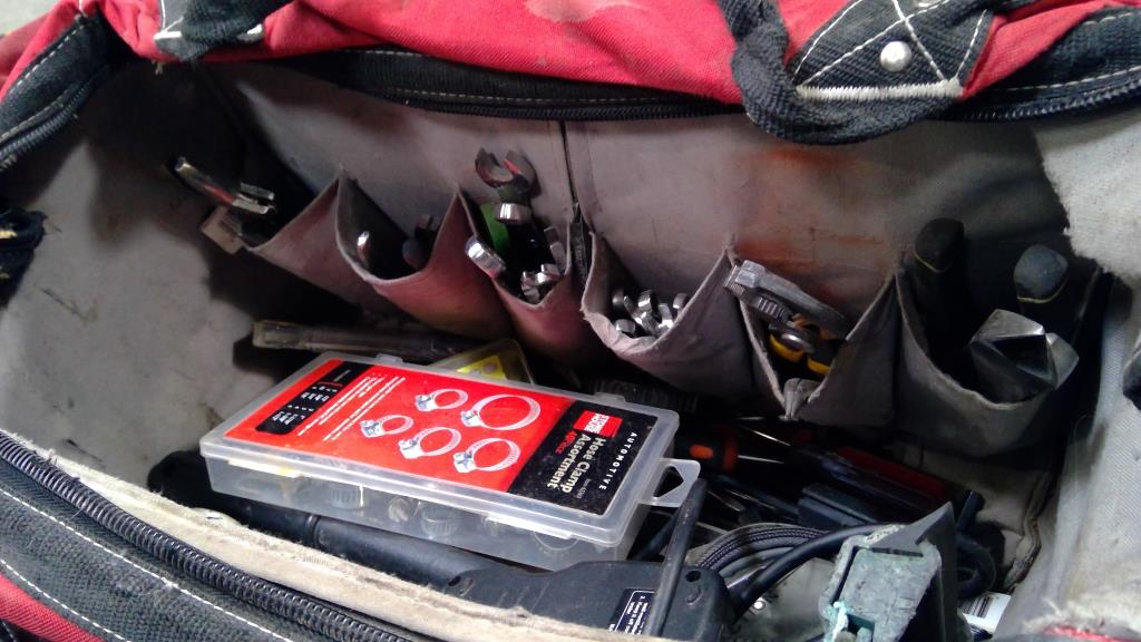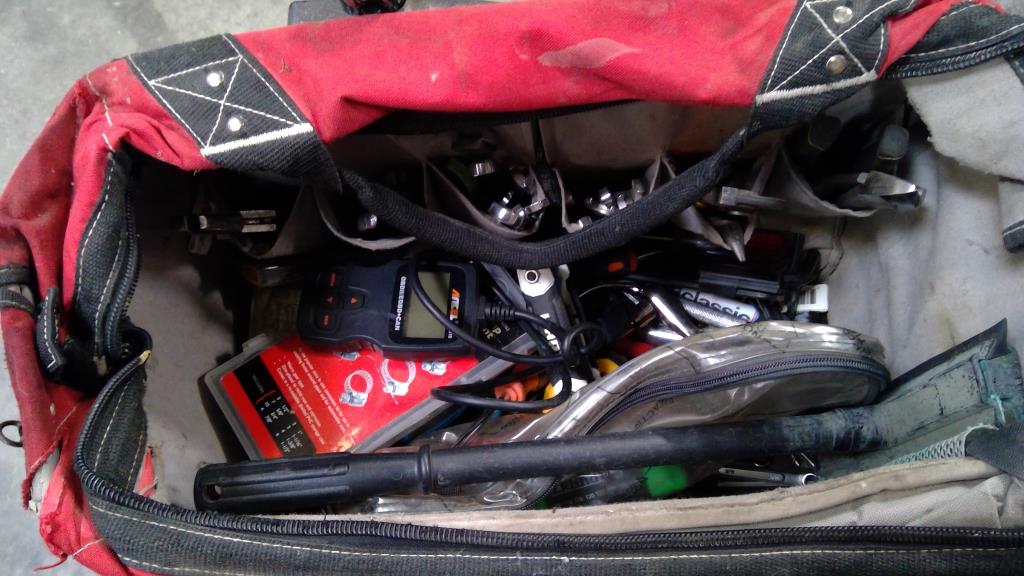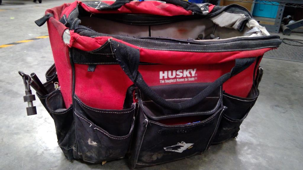 Husky Rolling Tool Bag With Mixed Tools - Hose Clamps, OBD2 Scanner, And More