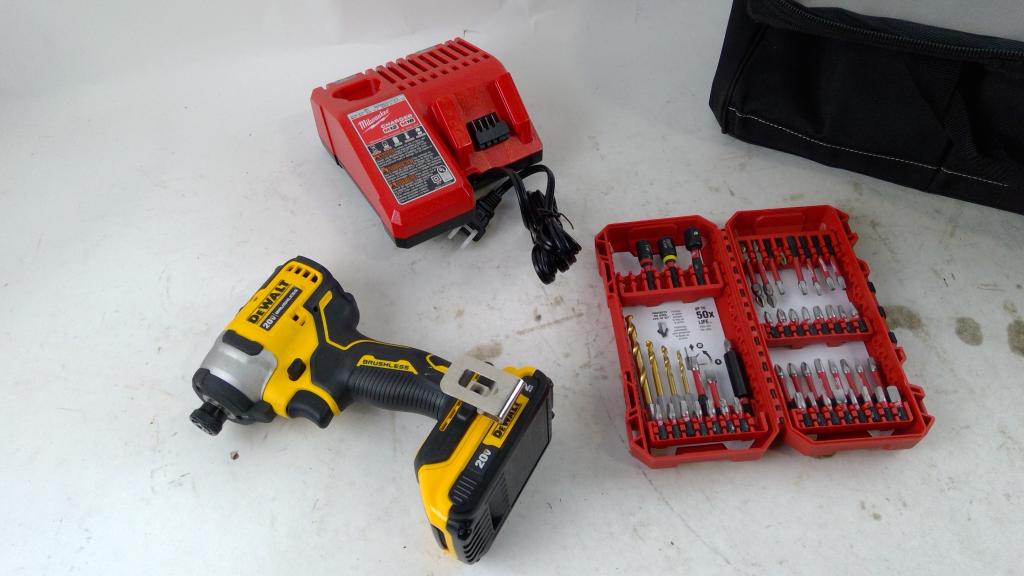 Get a great deal with this online auction presented by PropertyRoom.com on behalf of a law enforcement or public agency client. - Cosmetic Condition: Tool bag, Impact driver, Tool battery charger and more