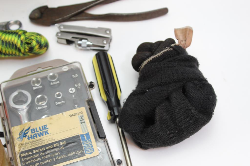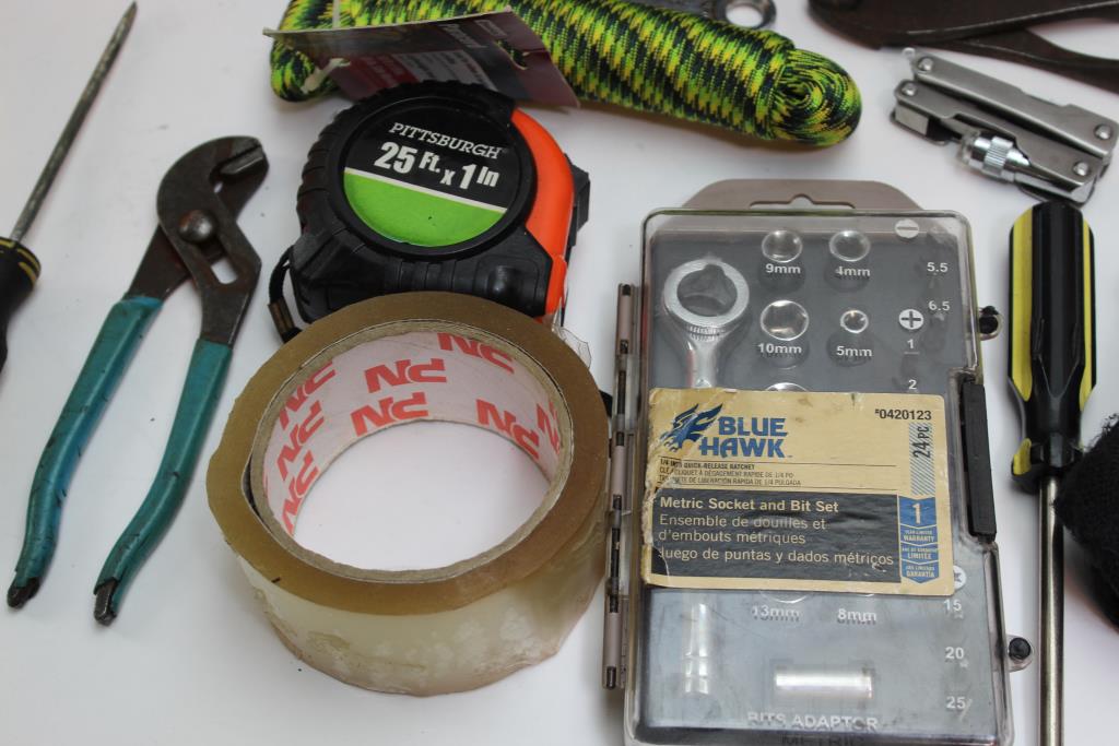 - Tools: socket, bits, screwdrivers, pliers + more