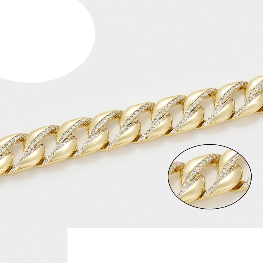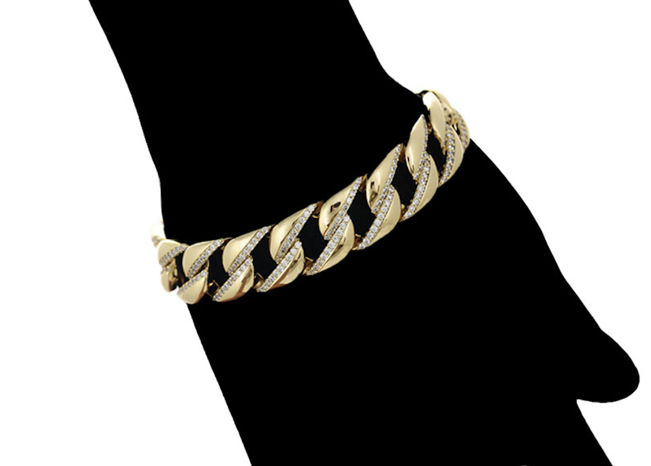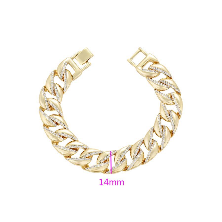 Iced Out 14.0mm 14K Gold Plated Cuban Link Bracelet