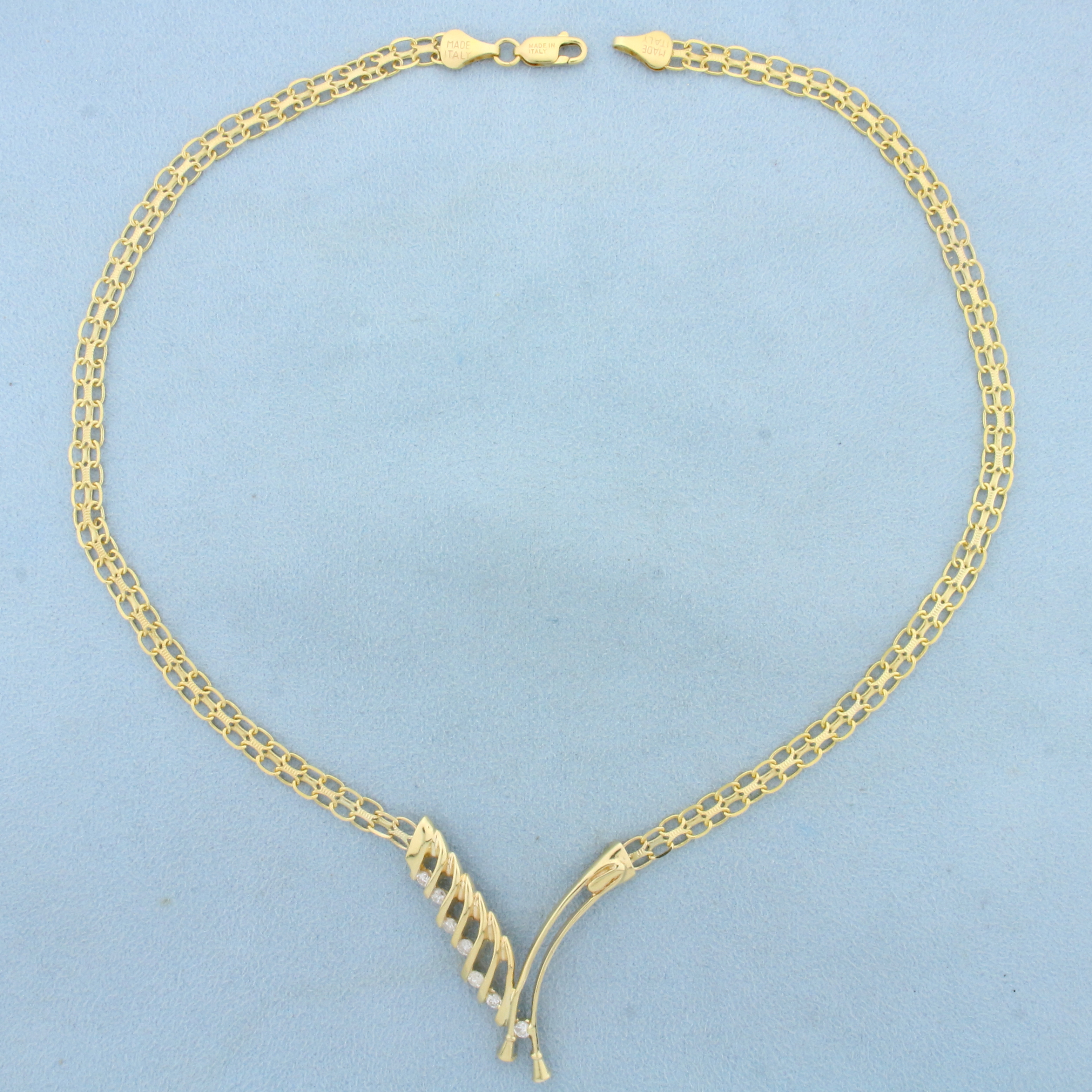 Italian Made Abstract Design Bismarck Link Diamond Necklace in 14K Yellow Gold