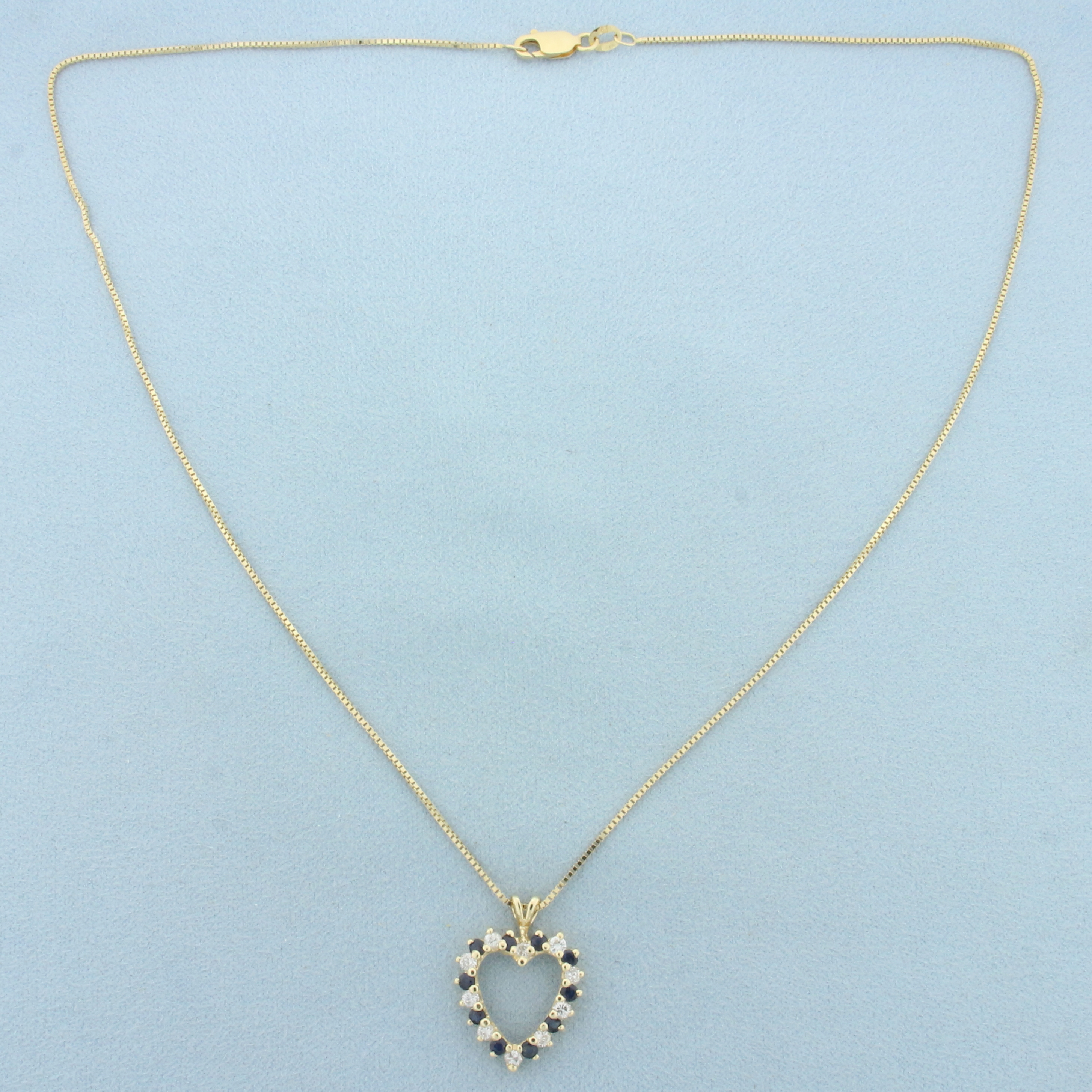 Italian Sapphire and Diamond Heart Necklace in 14k Yellow Gold