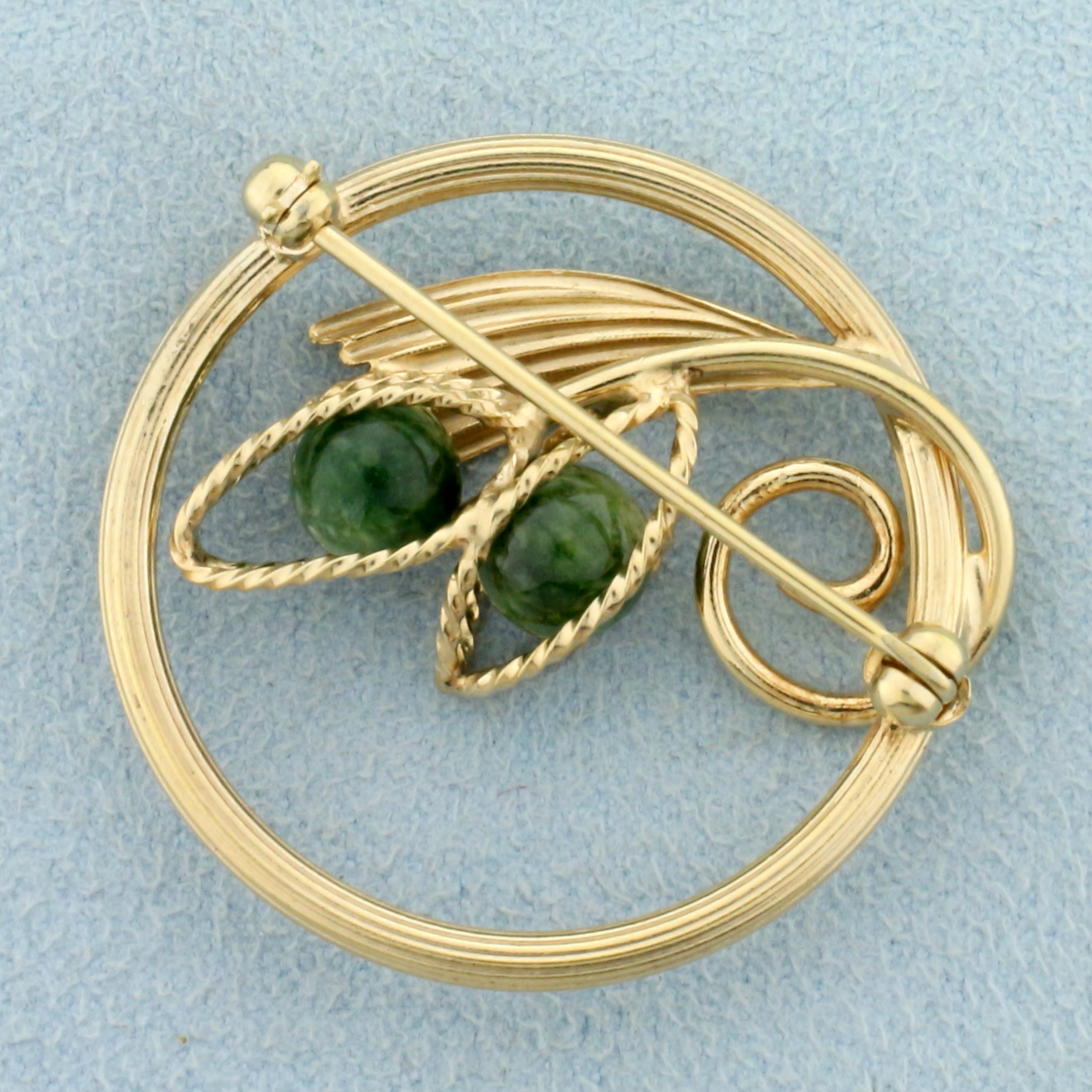 Jade Bead Abstract Design Pin in 14K Yellow Gold