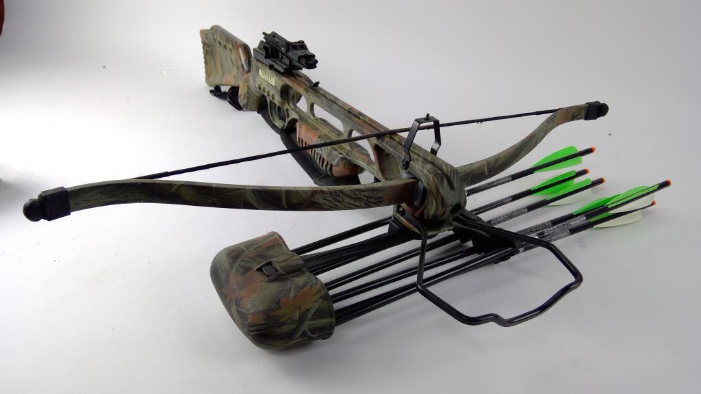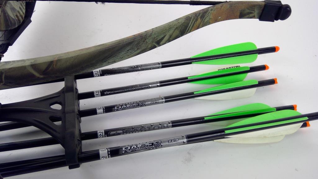 Get a great deal with this online auction presented by PropertyRoom.com on behalf of a law enforcement or public agency client. Model: Unknown Color: Camouflage Bow Length: Approx. 35" Accessories: 6 Easton Arrows Cosmetic Condition: Good Shipment by PropertyRoom to any jurisdiction does not mean this item is legal in such jurisdiction. It is your responsibility to have knowledge of, obey, or comply with all applicable laws relating to this item.