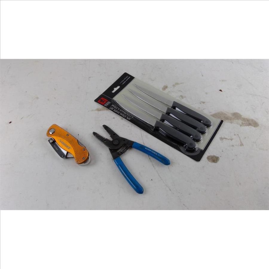 Get a great deal with this online auction presented by PropertyRoom.com on behalf of a law enforcement or public agency client. - Items include: Wire stripper, Knife, Steak knife set