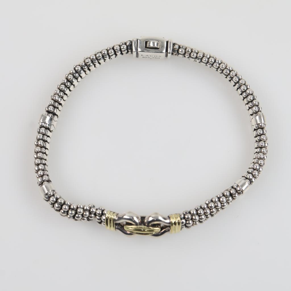 Lagos Sterling Silver Gold Accent Derby Two-Tone Caviar Buckle Bracelet