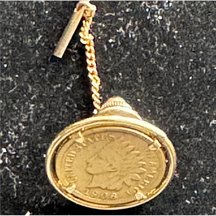 LAPEL PIN NS WITH A 1906 INDIAN HEAD PENNY CENTER PIECE