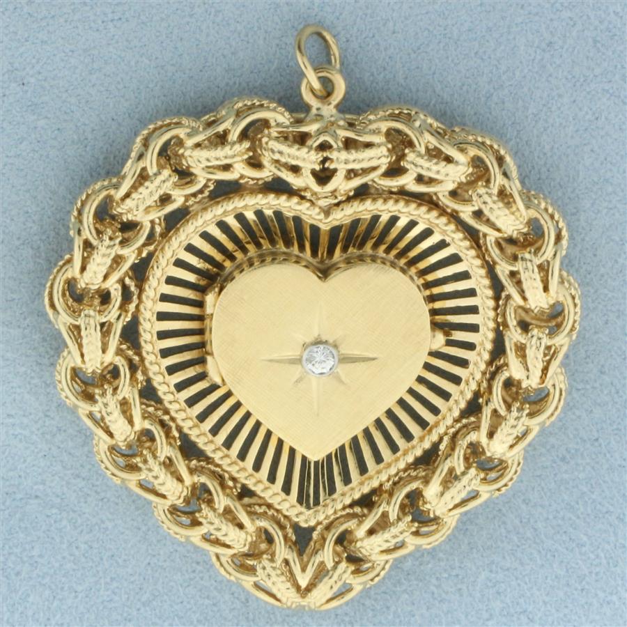 Large Diamond Heart Locket Pendant in 14k Yellow Gold
