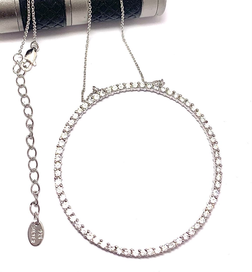 LASSAIRE .925 Sterling Silver Simulated Diamond Circle of Love Necklace