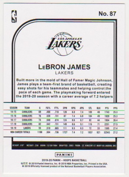 • Item #: Lebron2019-20Hoops