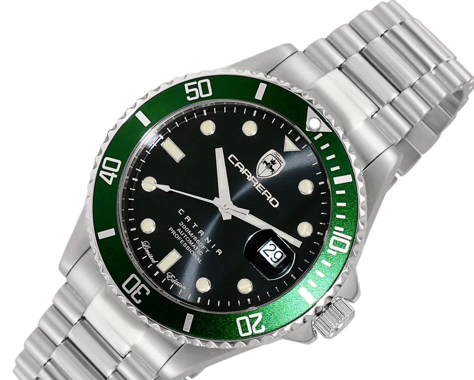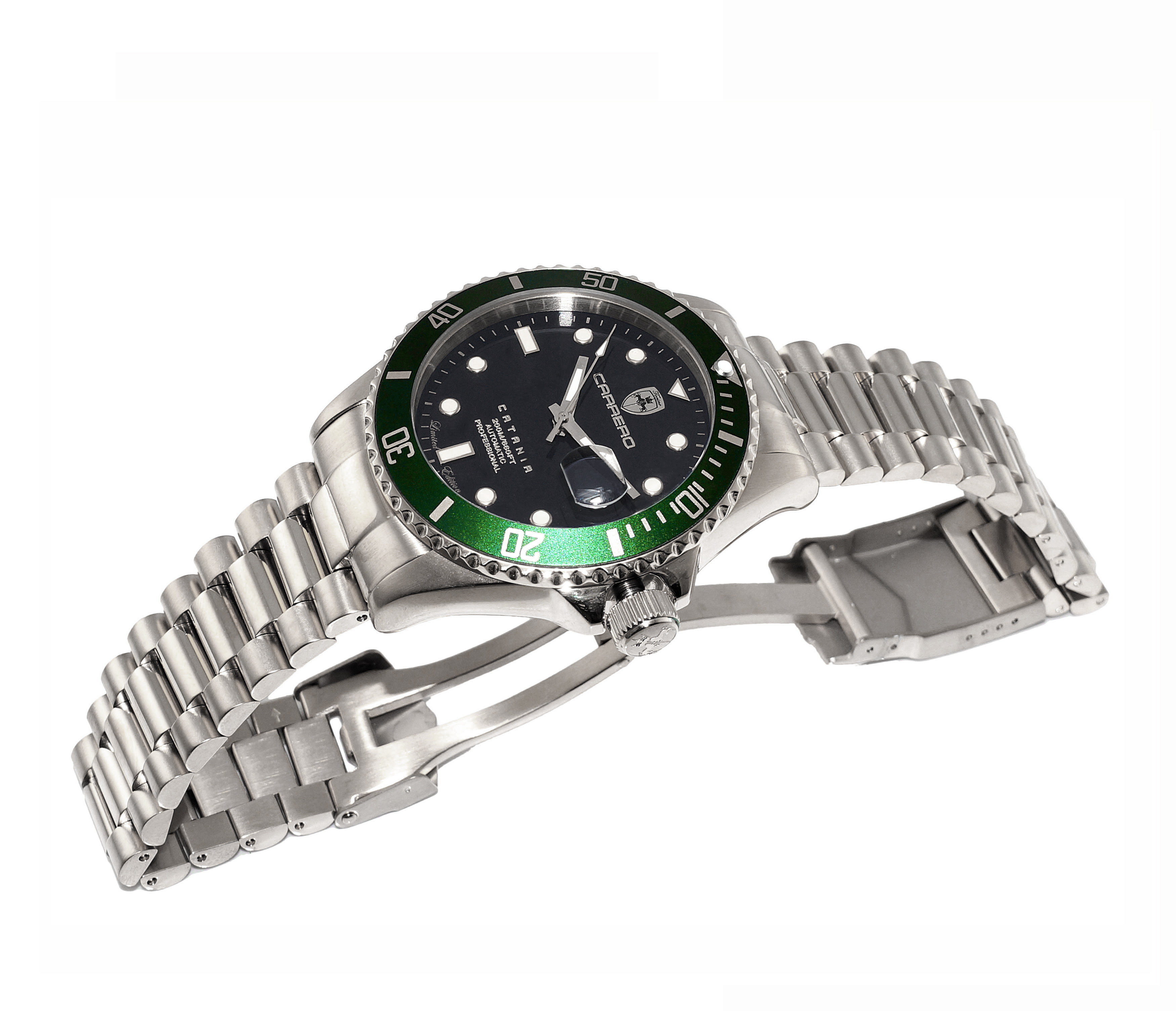 Bezel Rotating Unidirectional, Aluminum polished  Bezel, Green color with Silver tone trim