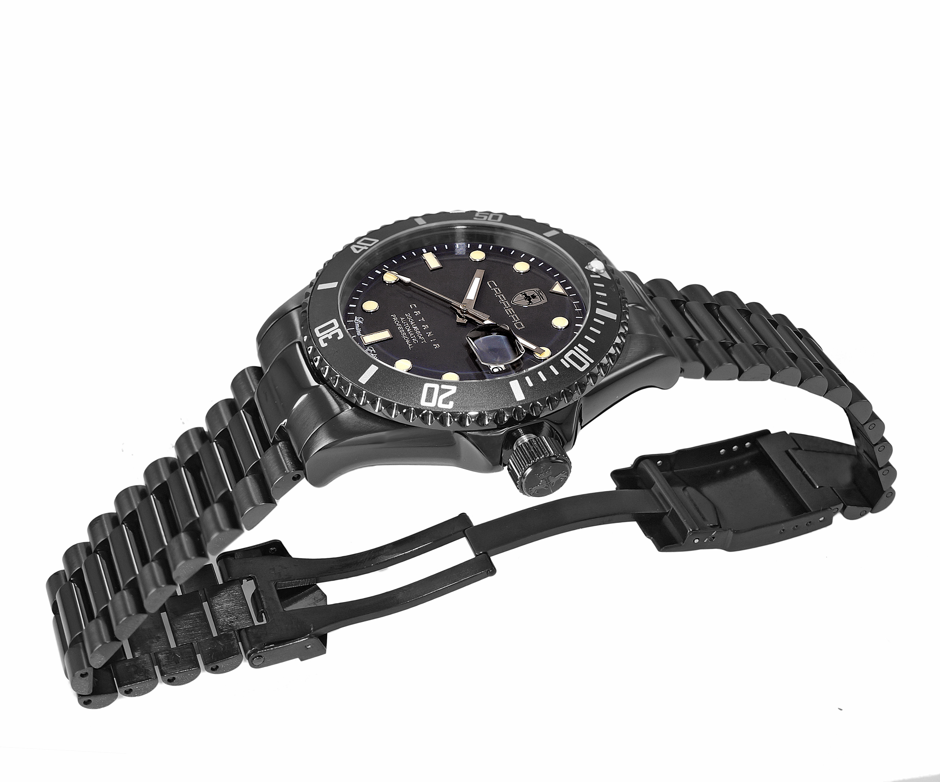 Lechateau Men's Automatic NH35 -21 JEWELS, Magnifying Date Dial with Exhibition Back, Black-IP - C1BK888BK Retail at (MSRP: $ 2,124.00)