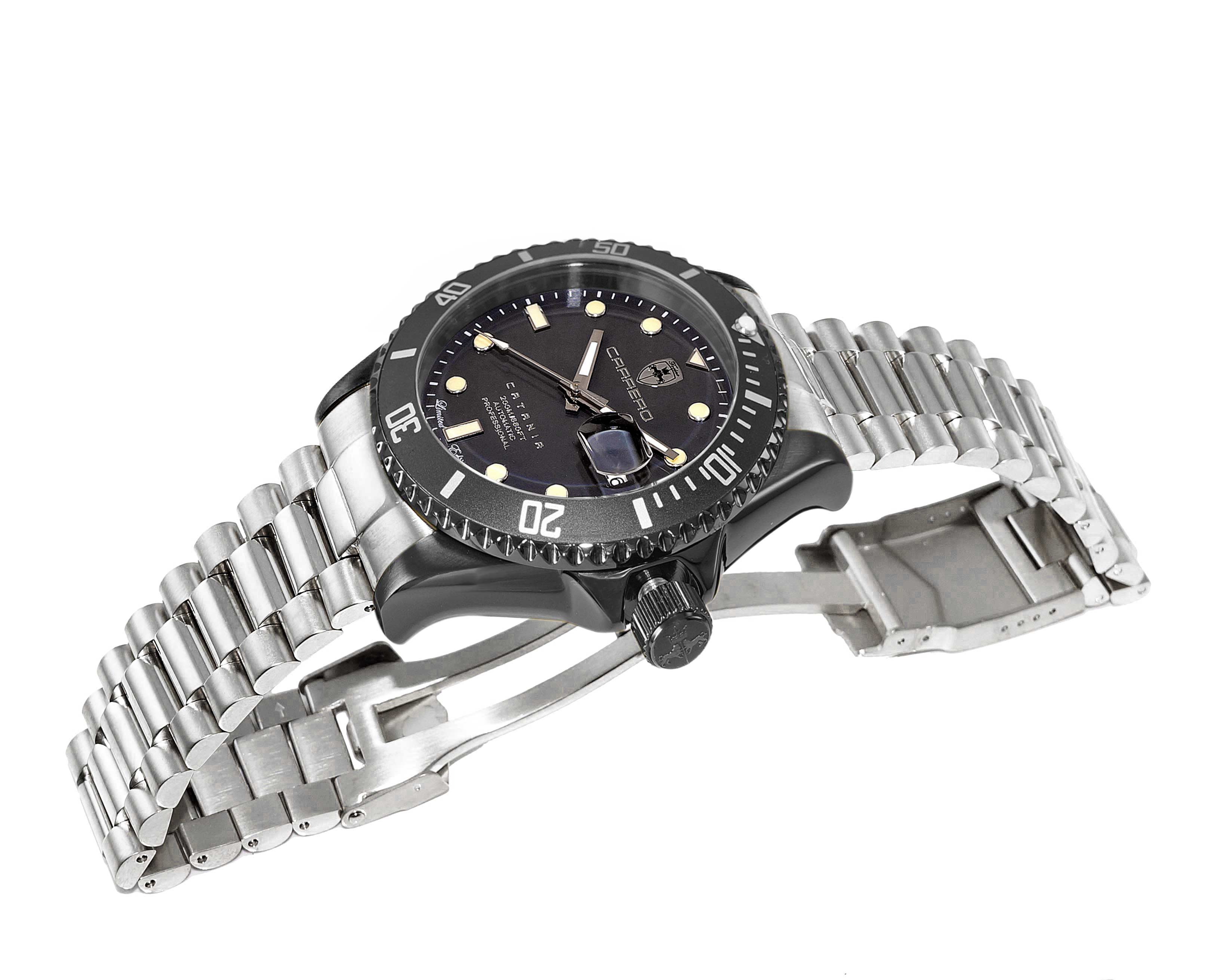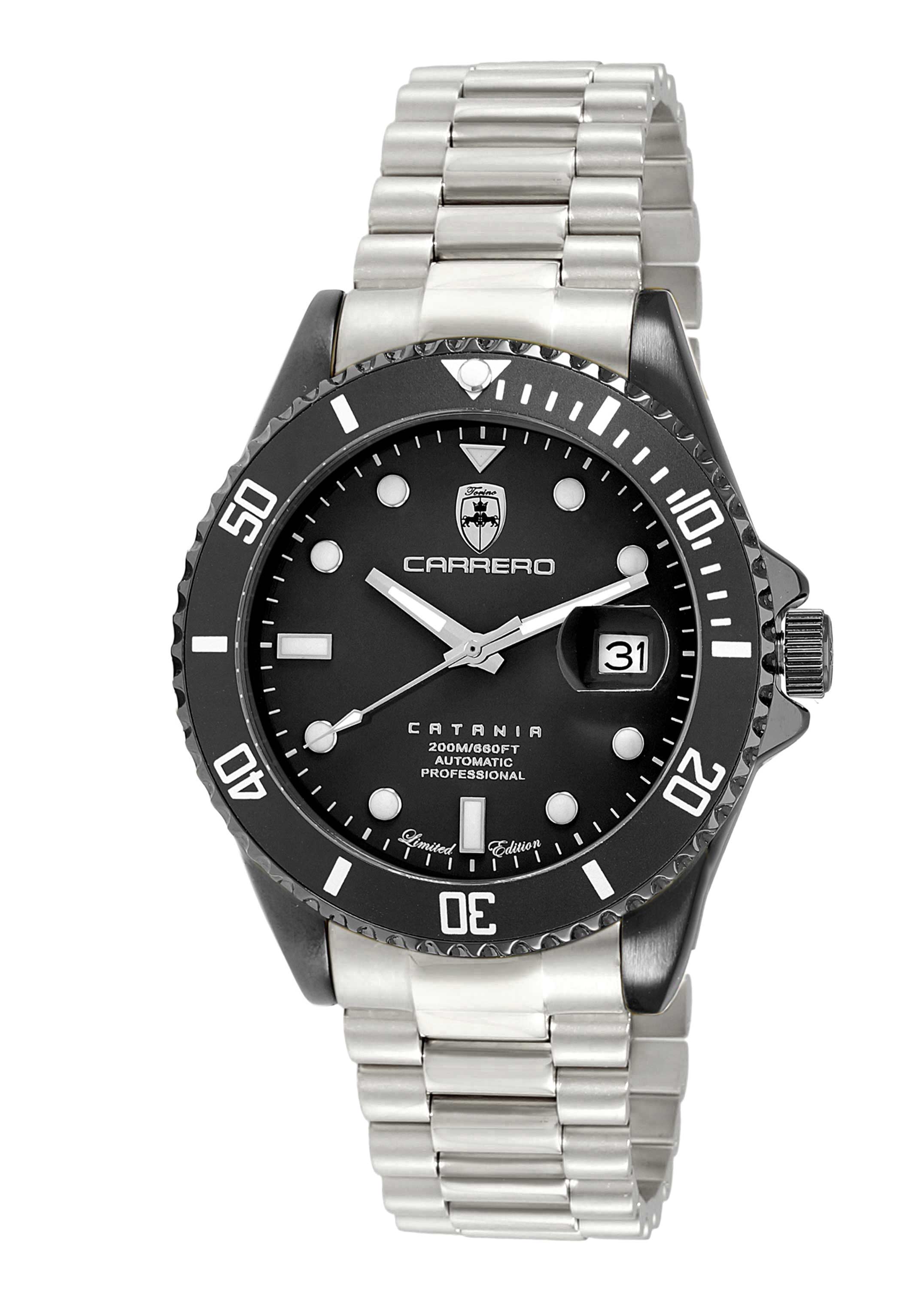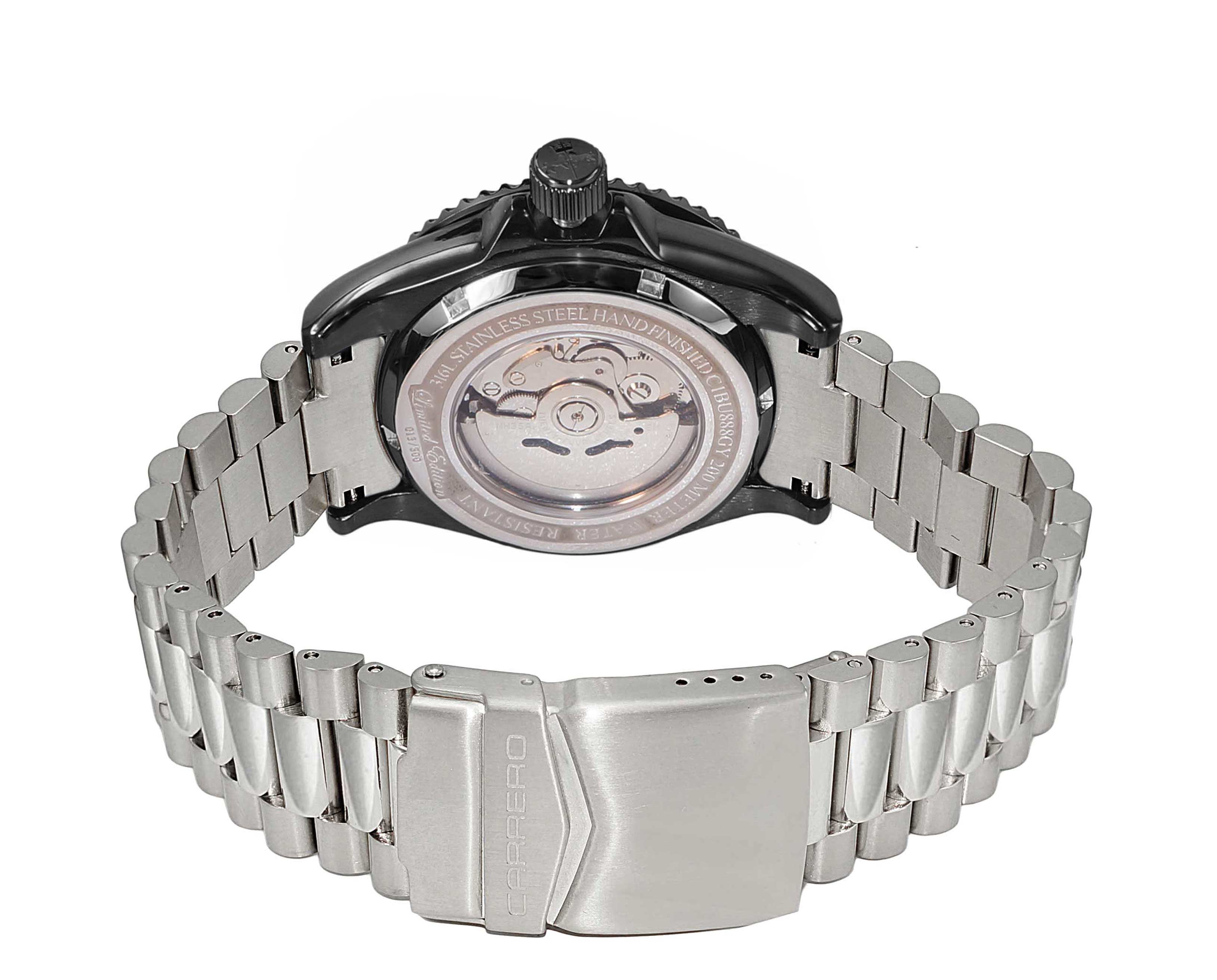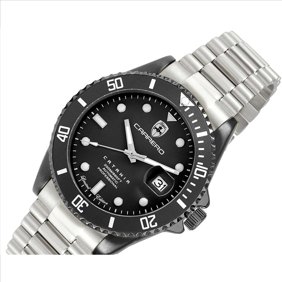 Lechateau Men's Automatic NH35 -21 JEWELS, Magnifying Date Dial with Exhibition Back, Black-IP Case, Silvertone Band, C1BK888BK_SS - Retail at (MSRP: $ 2,124.00)