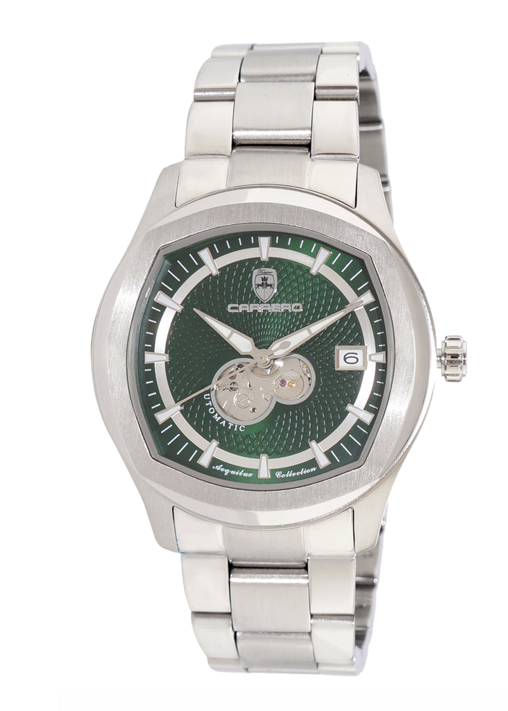Lechateau, Men's Automatic NH35A - 24 JEWELS, Green Date Dial with Heart Beat, Exhibition Back, (MSRP: $2,268.00)