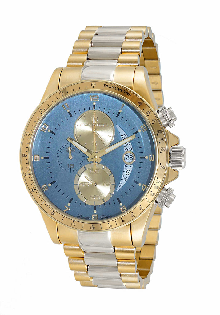 Lechateau Mens, Swiss-Ronda Chronograph Mov't, 2- Told Gold, Blue -Date Dial, C2T101UBU - MSRP: $2,468.00