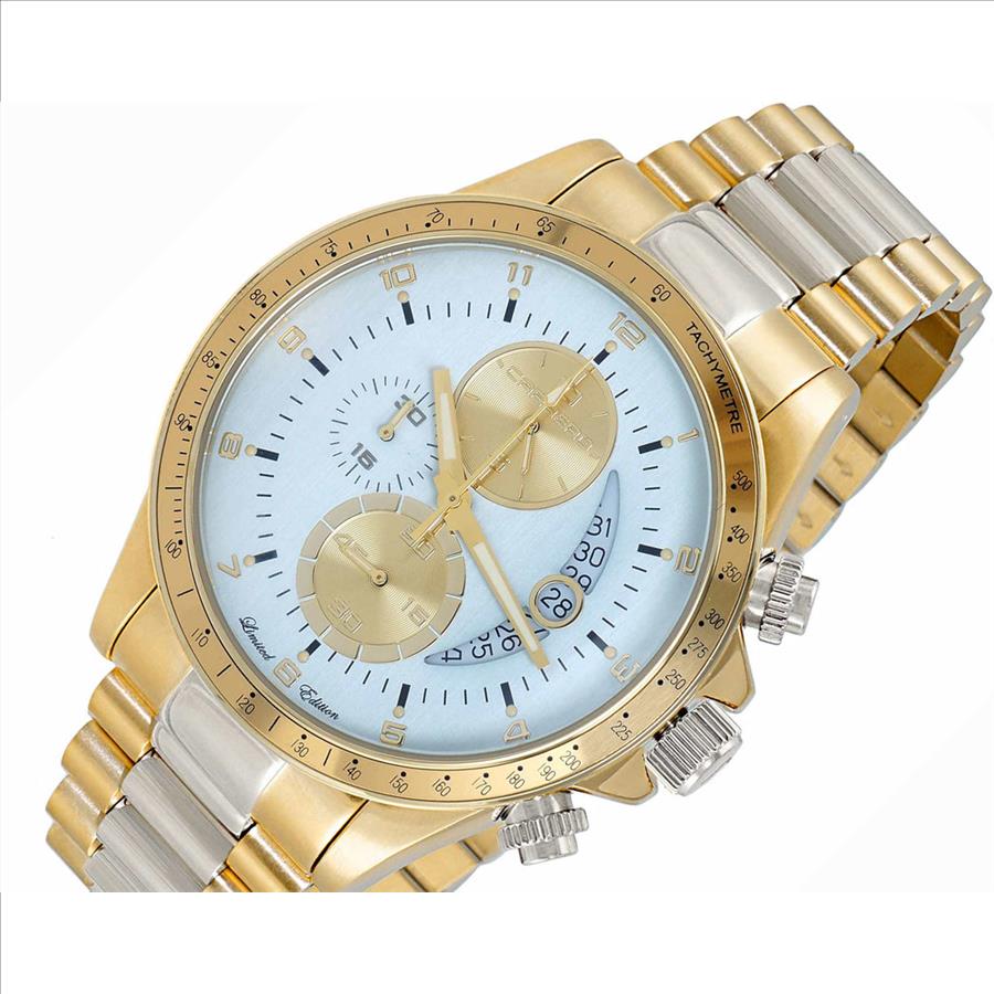 Lechateau Mens, Swiss-Ronda Chronograph Mov't, 2- Told Gold, Light Blue -Date Dial, C2T101LBU - MSRP: $2,468.00