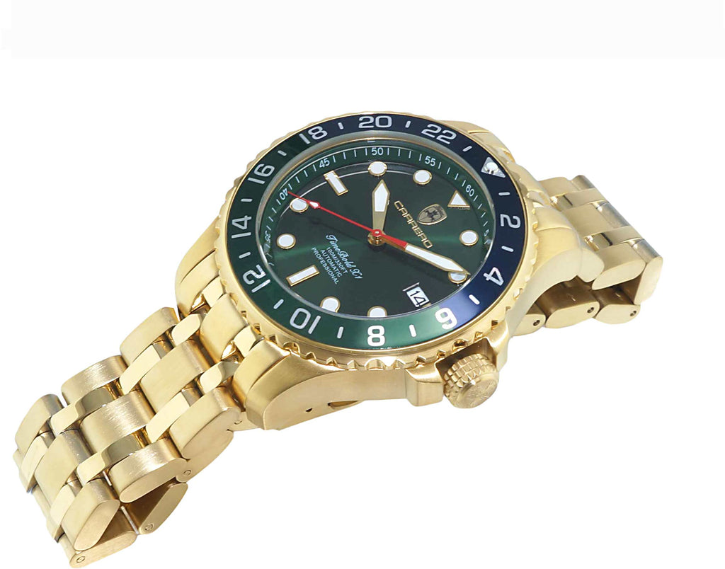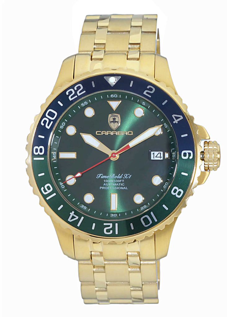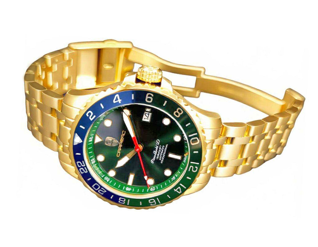 LeChateau, Men's TIME BOLD- X1 COLLECTION, NH35 AUTOMATIC MOVEMENT, 10 ATM, IP-Gold - GREEN/BLUE, MSRP: $2,340.00