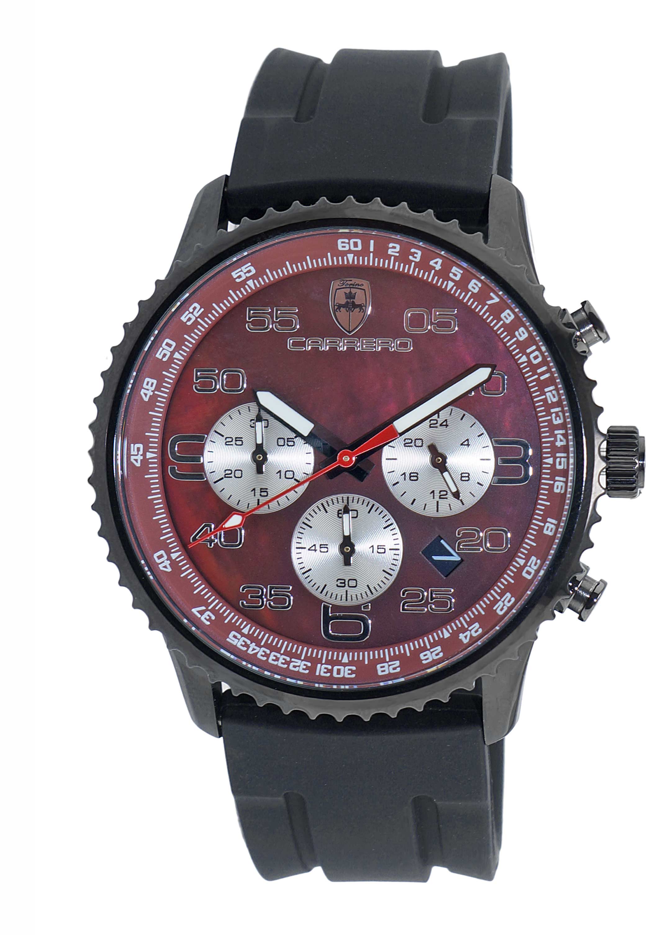 Dial:    Maroon, Mother of Pearl Dial, Numeric Hour Indicator, Luminous Hour-Minute-Second Hands.