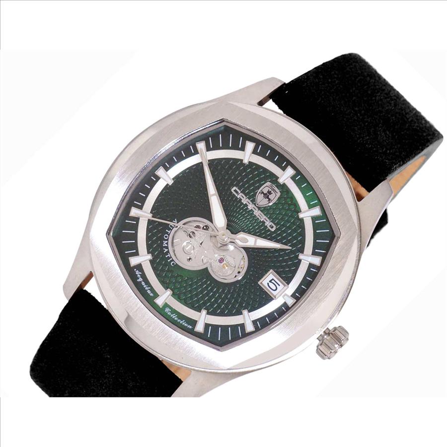 LECHATEAU, MEN'S WATCH, 24-JEWELS AUTOMATIC, HEART BEAT GREEN DIAL, BLACK-SUED LEATHER BAND, (MSRP: $2,388.00)