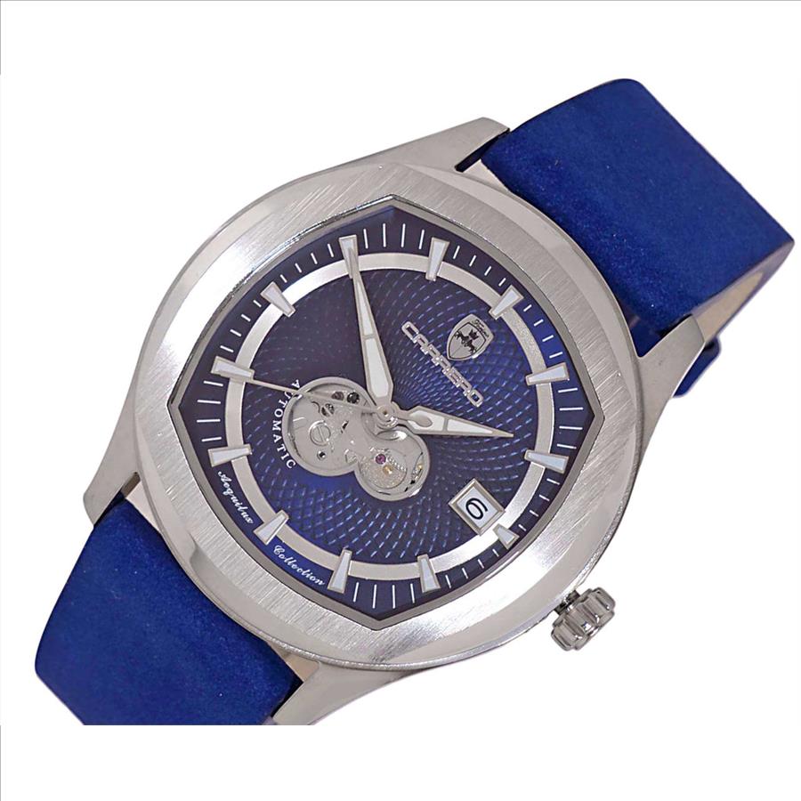 LECHATEAU, MEN'S WATCH, 24-JEWELS AUTOMATIC, WITH HEART BEAT BLUE DIAL, BLUE-SUED LEATHER BAND, (MSRP: $2,388.00)