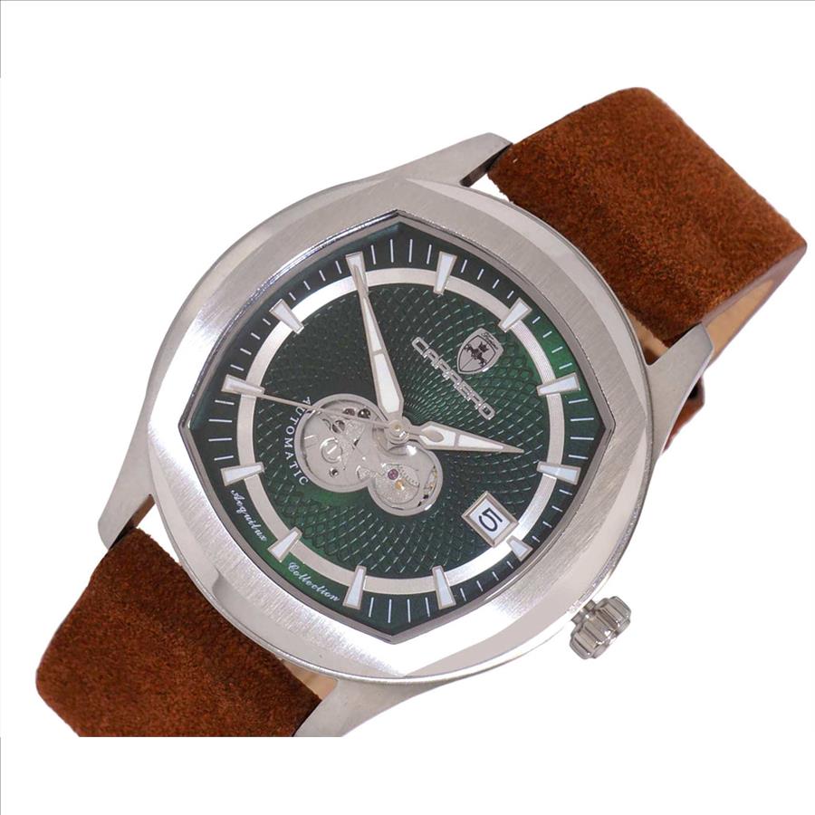 LECHATEAU, MEN'S WATCH, 24-JEWELS AUTOMATIC, WITH HEART BEAT GREEN DIAL, BROWN-SUED LEATHER BAND, (MSRP: $2,388.00)