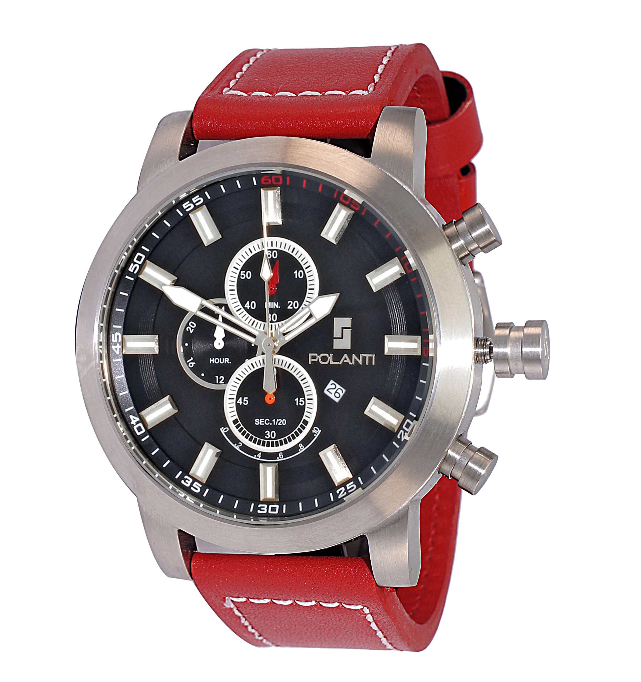 Lechateau Watches Men's Chronograph Mov't. Date Dial, RG0001M-RD_BK-SS RETAIL AT (MSRP: $ 794.00)