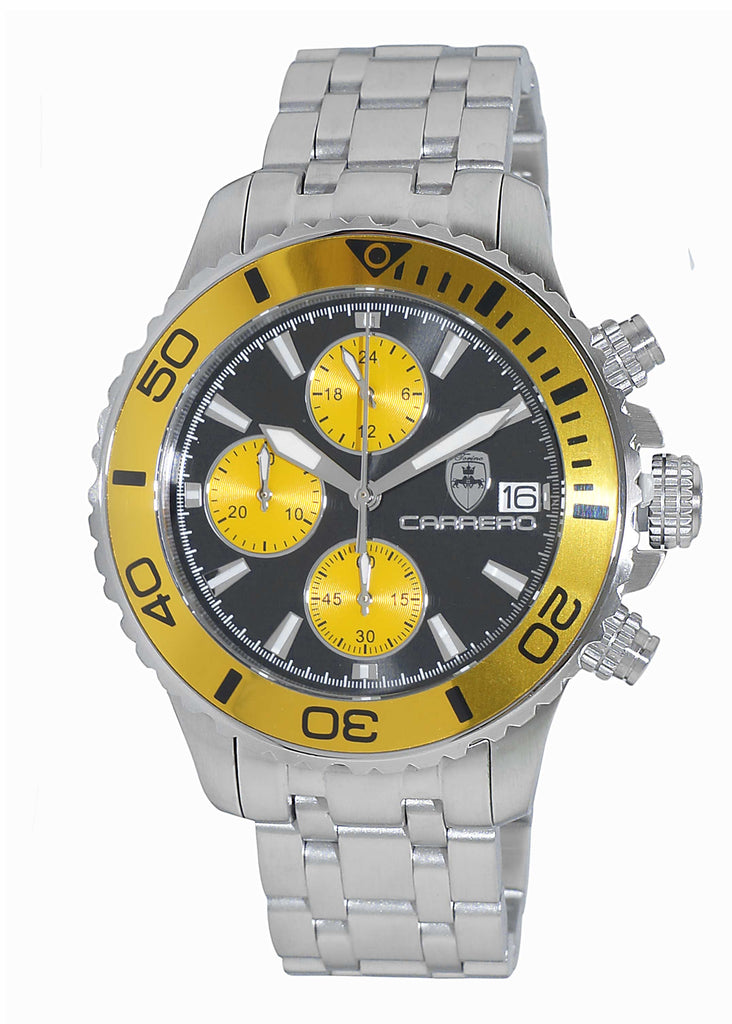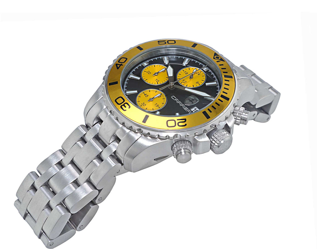 Lechateau Watches, Men's VR33-Chronograph Mov't., Black/Yellow - Date Dial and BEZEL, C1S3735YL - RETAIL AT (MSRP: $1,595.00)