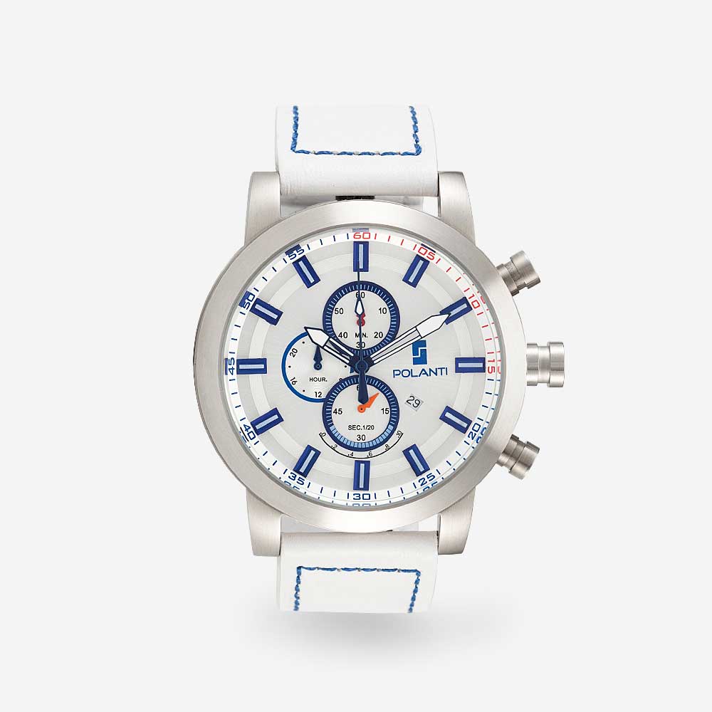 Lechateau Watches - POLANTI Men's Chronograph Mov't. White Date Dial, RG0001W-SS RETAIL AT (MSRP: $ 794.00)