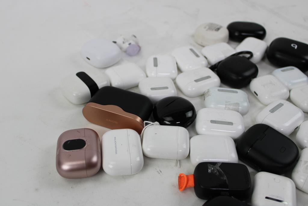 Loose Earbuds, Earbuds Cases Bulk Lot, 35 Pieces - NO PAIRS, LOOSE/EMPTY ONLY