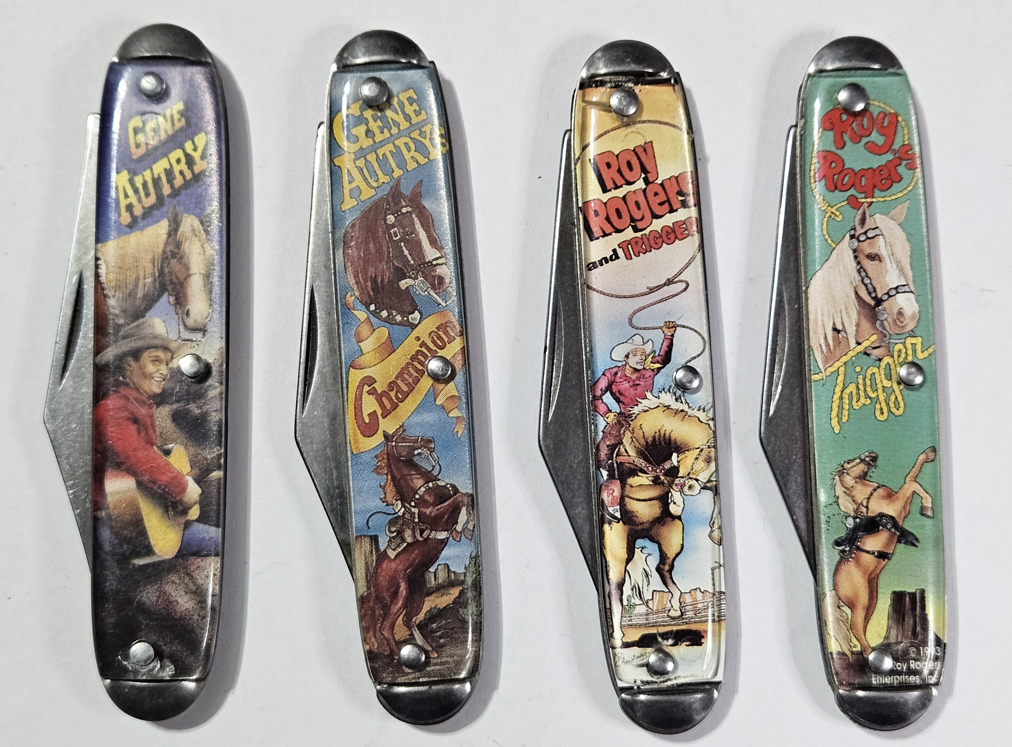 Lot of 4 Roy Rogers- Gene Autry - Novelty USA Made Pocket Knives - TV Golden Age Era Collectibles