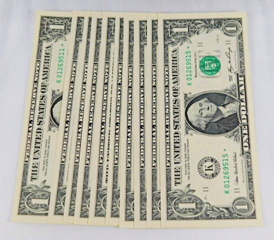 Lot of Ten (10) CONSECUTIVELY Numbered $1 STAR NOTES - Crisp Uncirculated - Beautiful Notes!