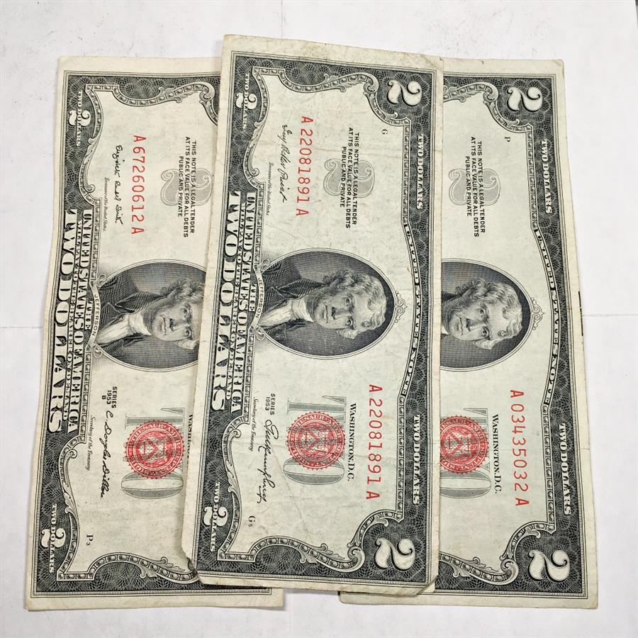 Lot of Three (3) Series 1953 $2 United States Red Seal Notes
