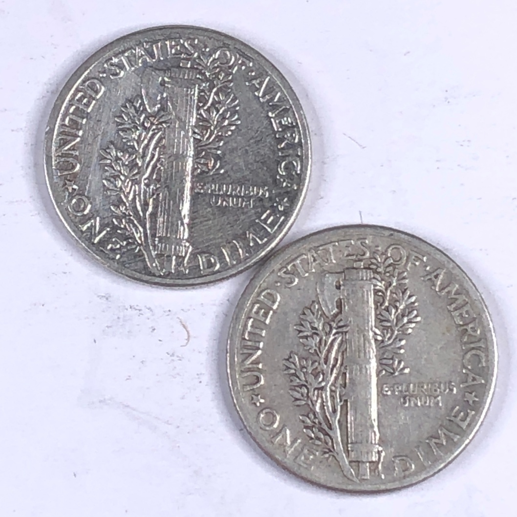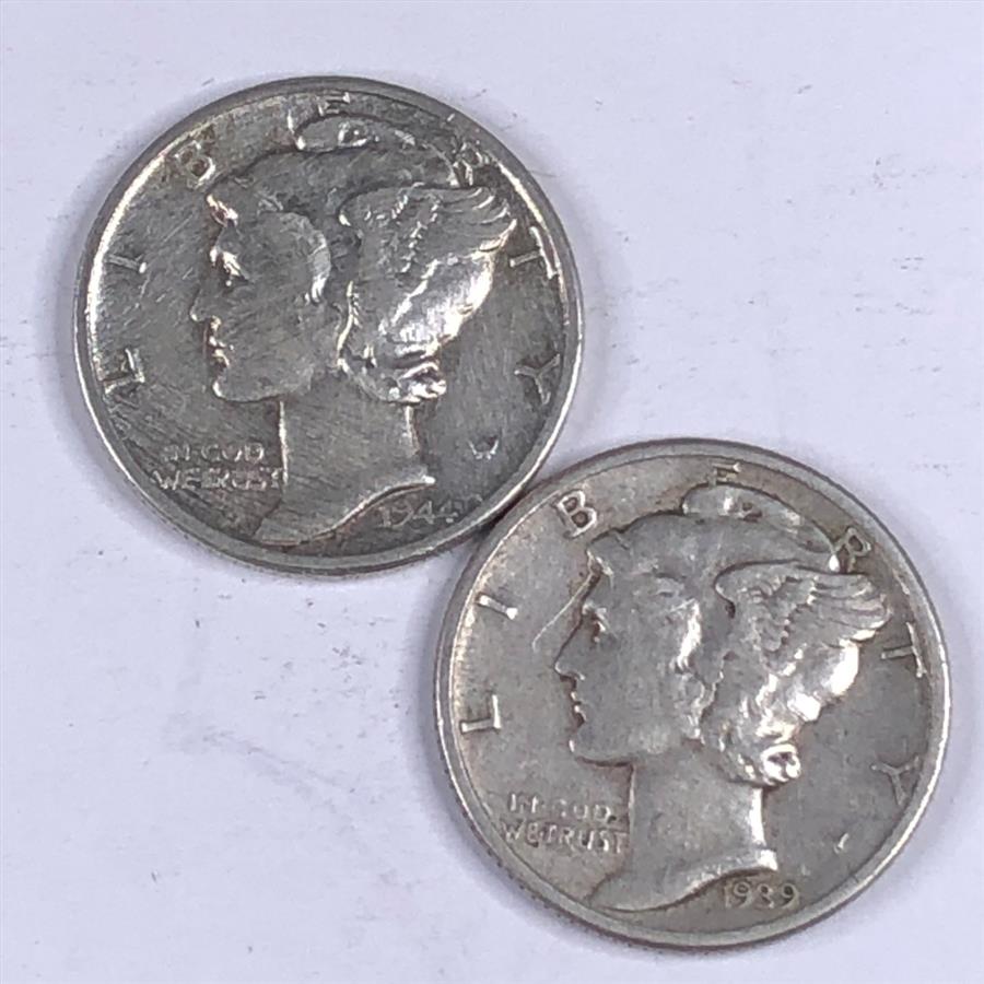 Lot of Two (2) Silver Mercury Head Dimes: 1939 & 1944