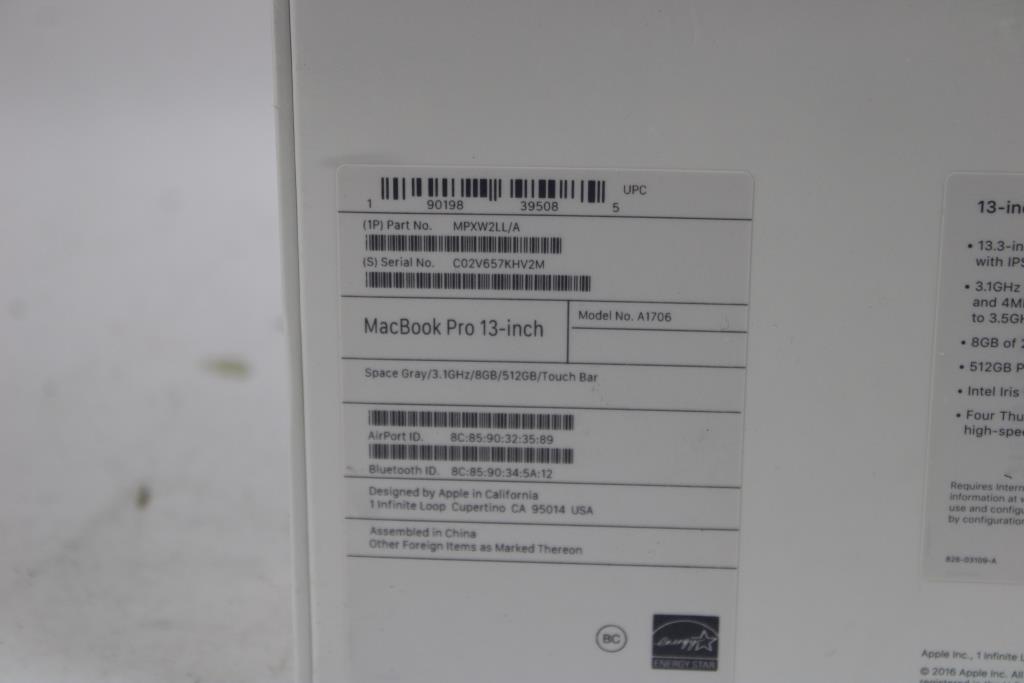 MacBook Pro 13 Inch Laptop A1706