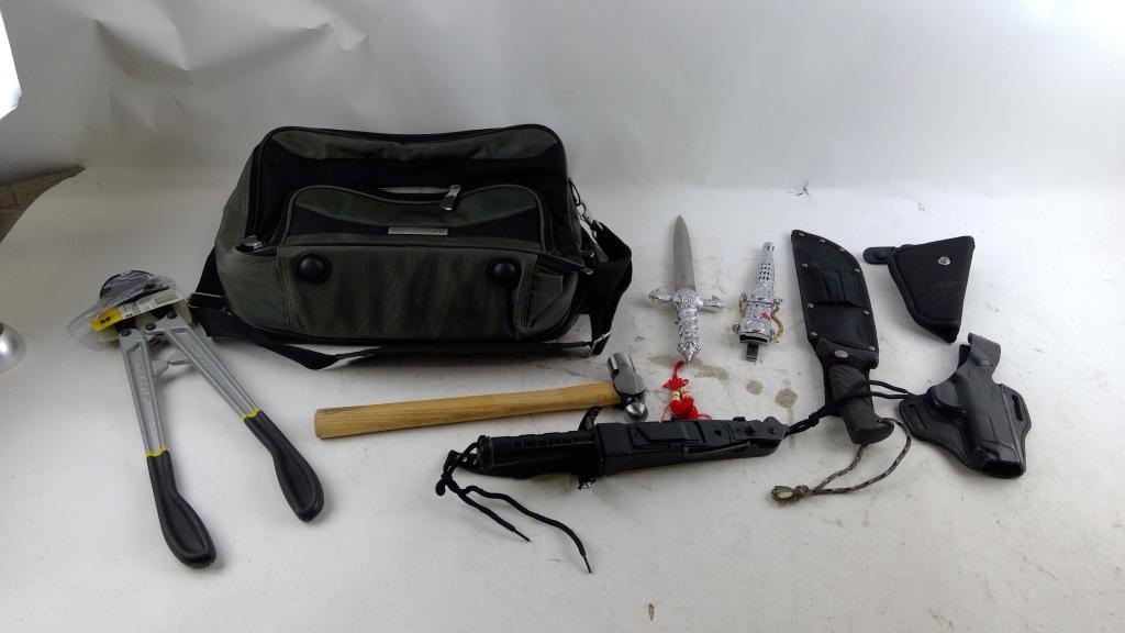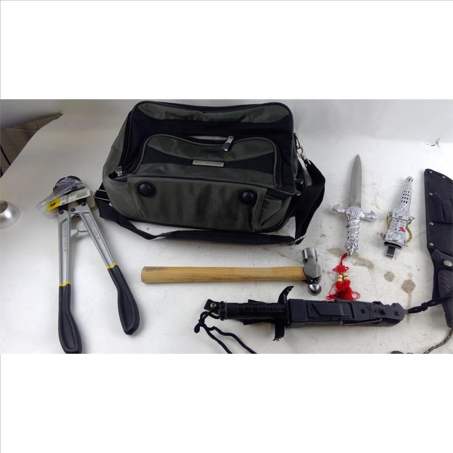 Get a great deal with this online auction presented by PropertyRoom.com on behalf of a law enforcement or public agency client. - Items include: Machete, Sword, Bolt Cutters, Knifes, Flashlight, Bag and more